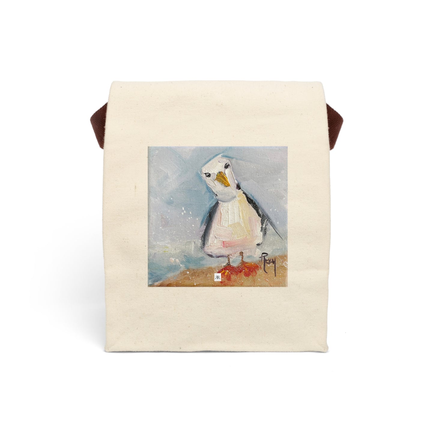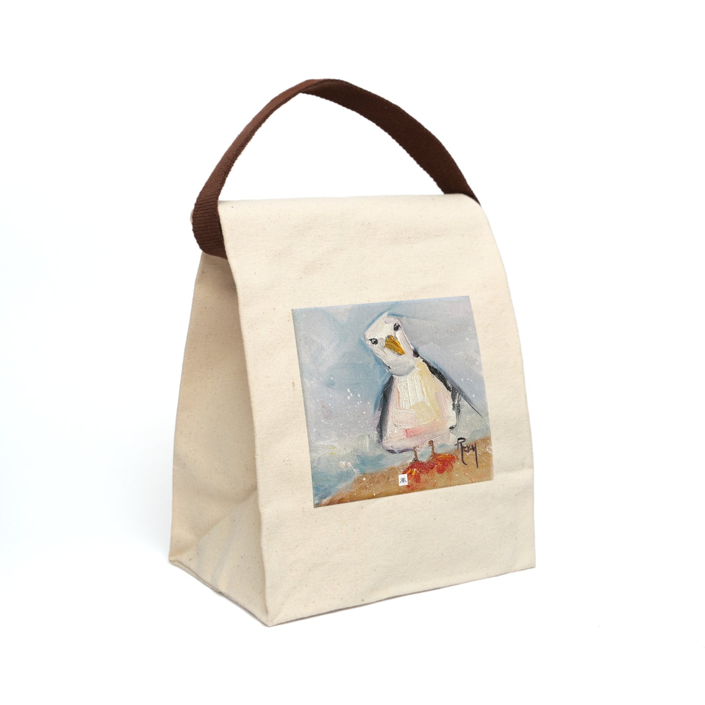 Inquisitive Seagull Canvas Lunch Bag With Strap