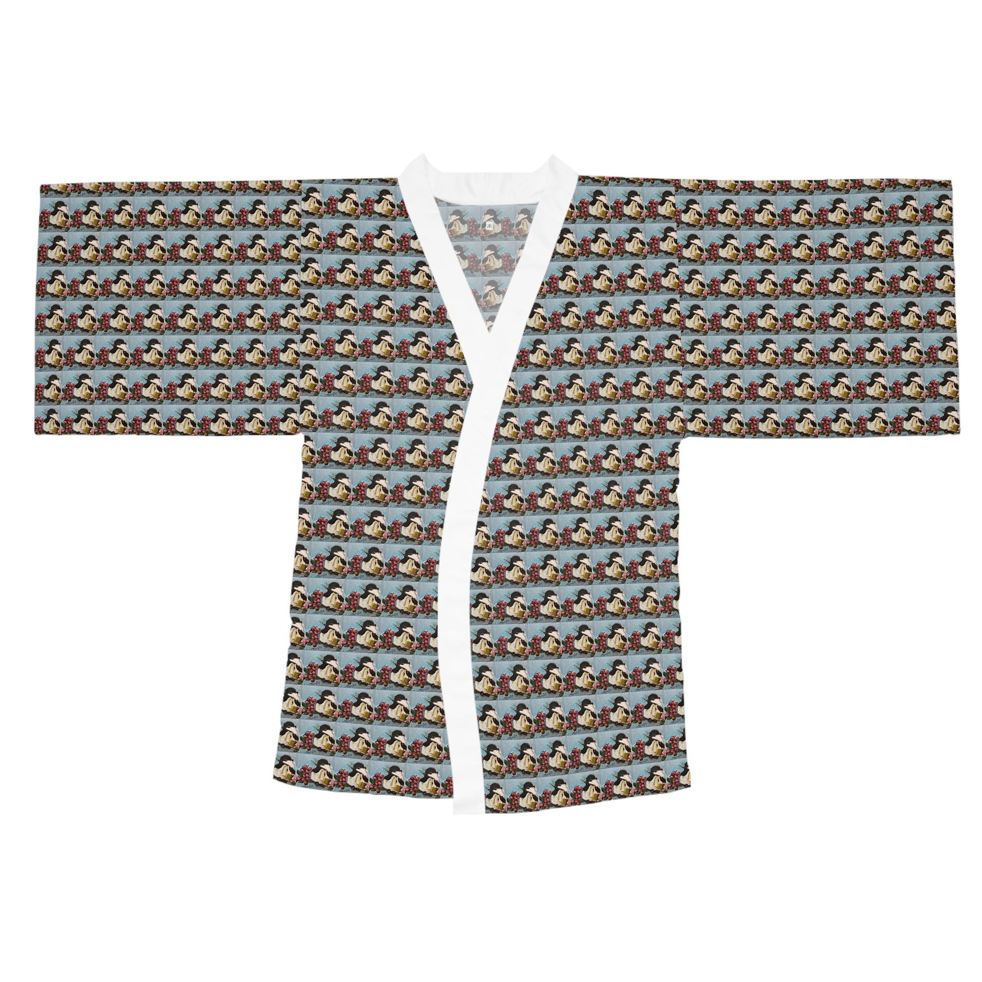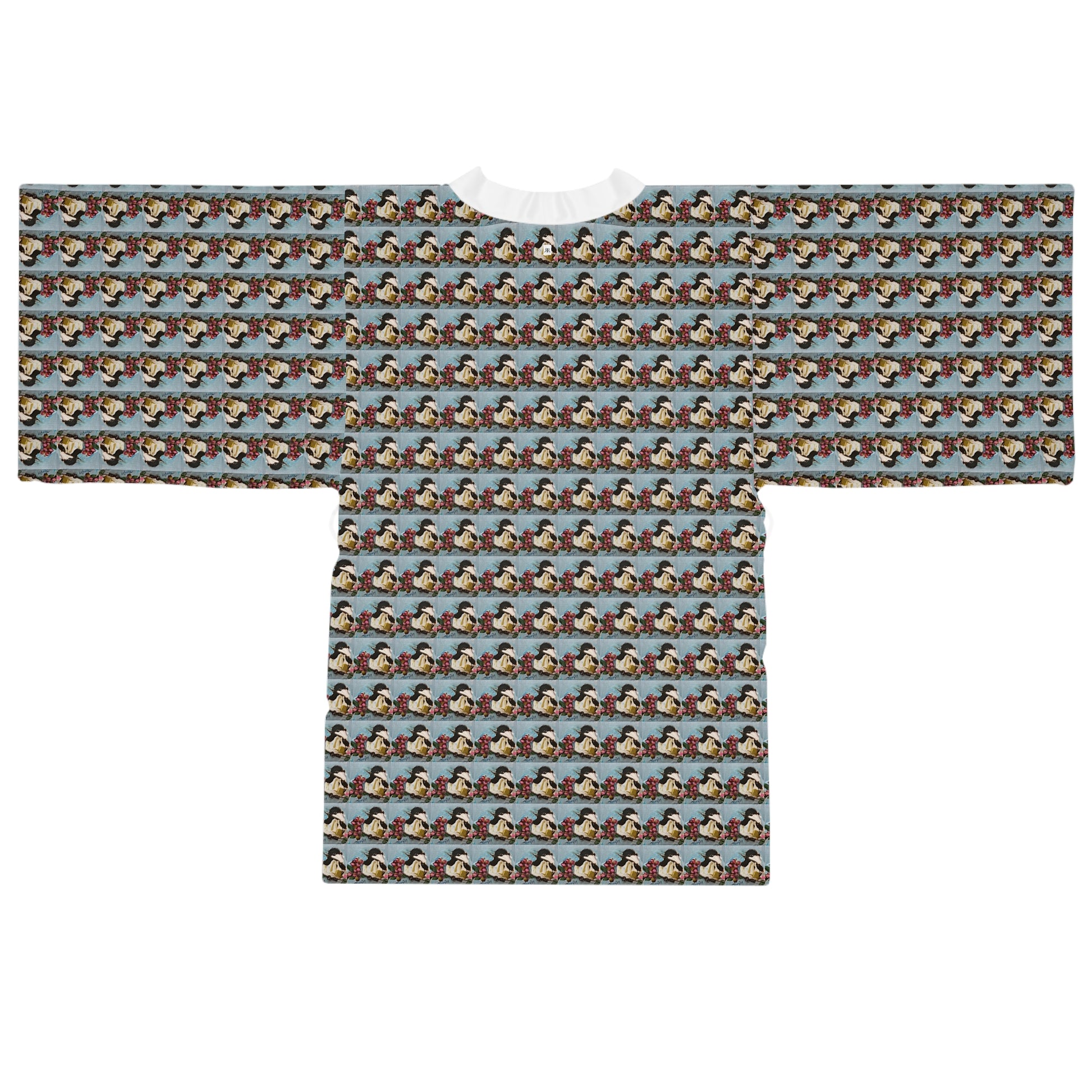 A beautiful kimono robe featuring a cherry blossom print, giving off a feminine and elegant vibe. Perfect for those who appreciate Japanese aesthetics and want to add a touch of tranquility to their daily routine. Ideal for relaxing at home, getting ready for a special occasion, or as a unique gift for a loved one. Relevant for celebrations like Mother's Day, birthdays, or anniversaries.