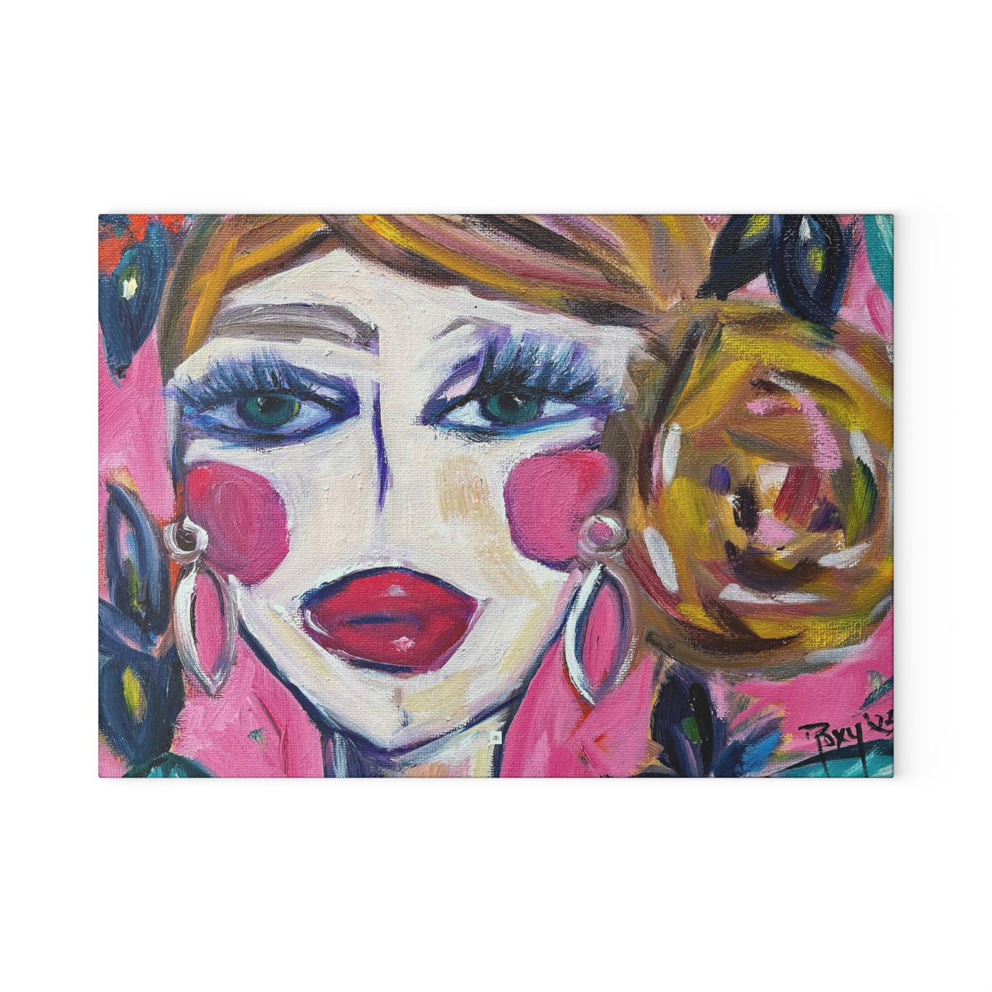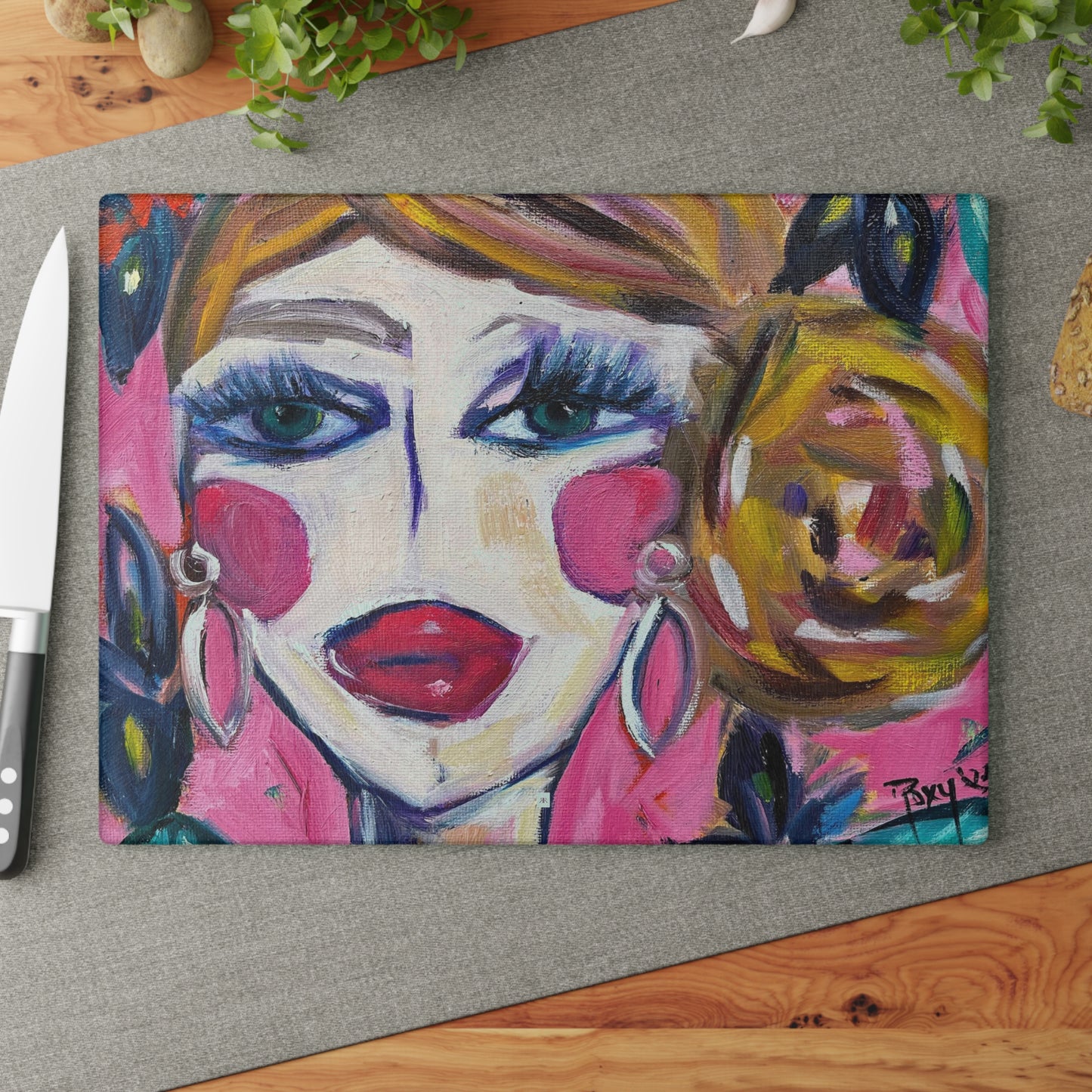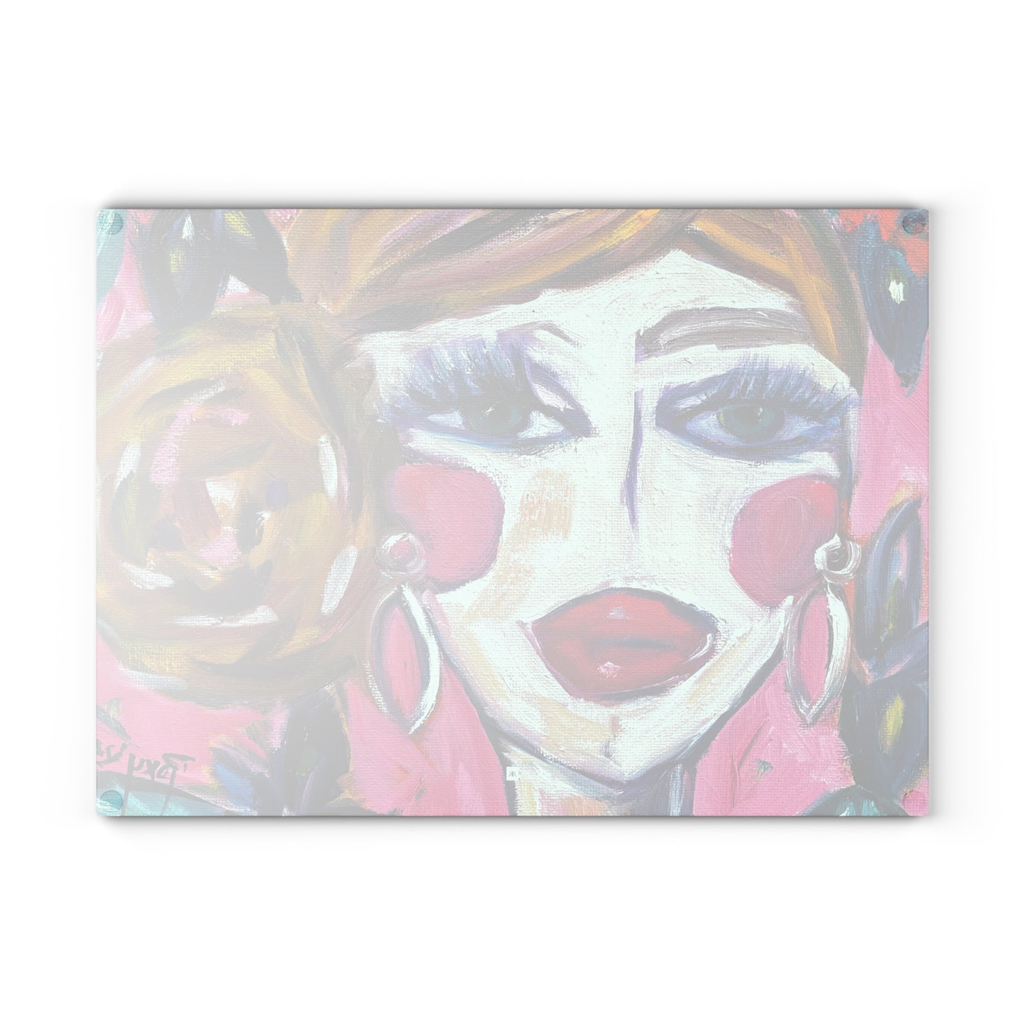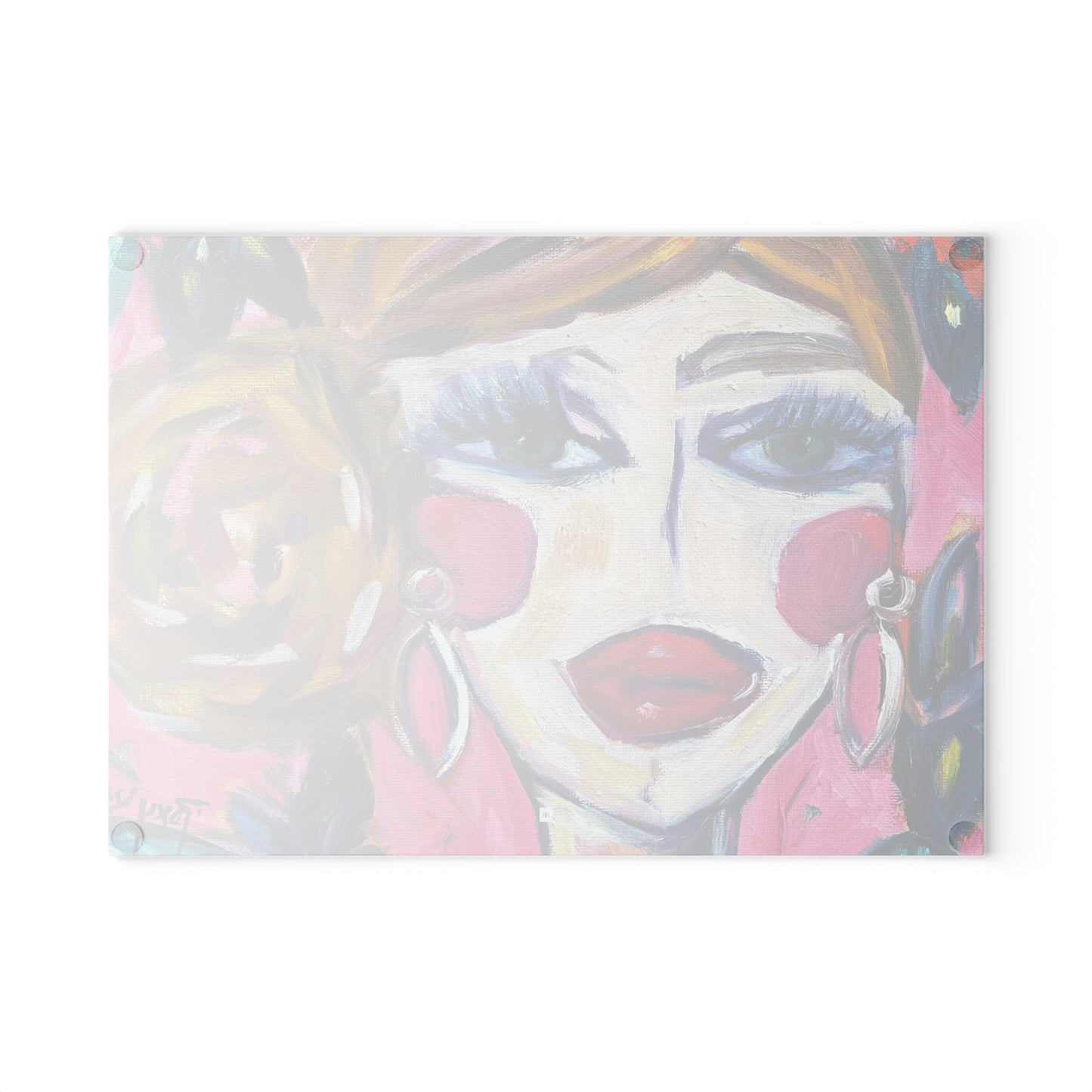 Lady with Irises: Pretty Pink Glass Cutting Board