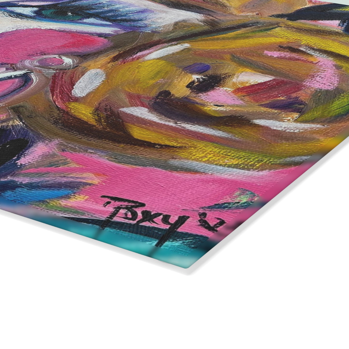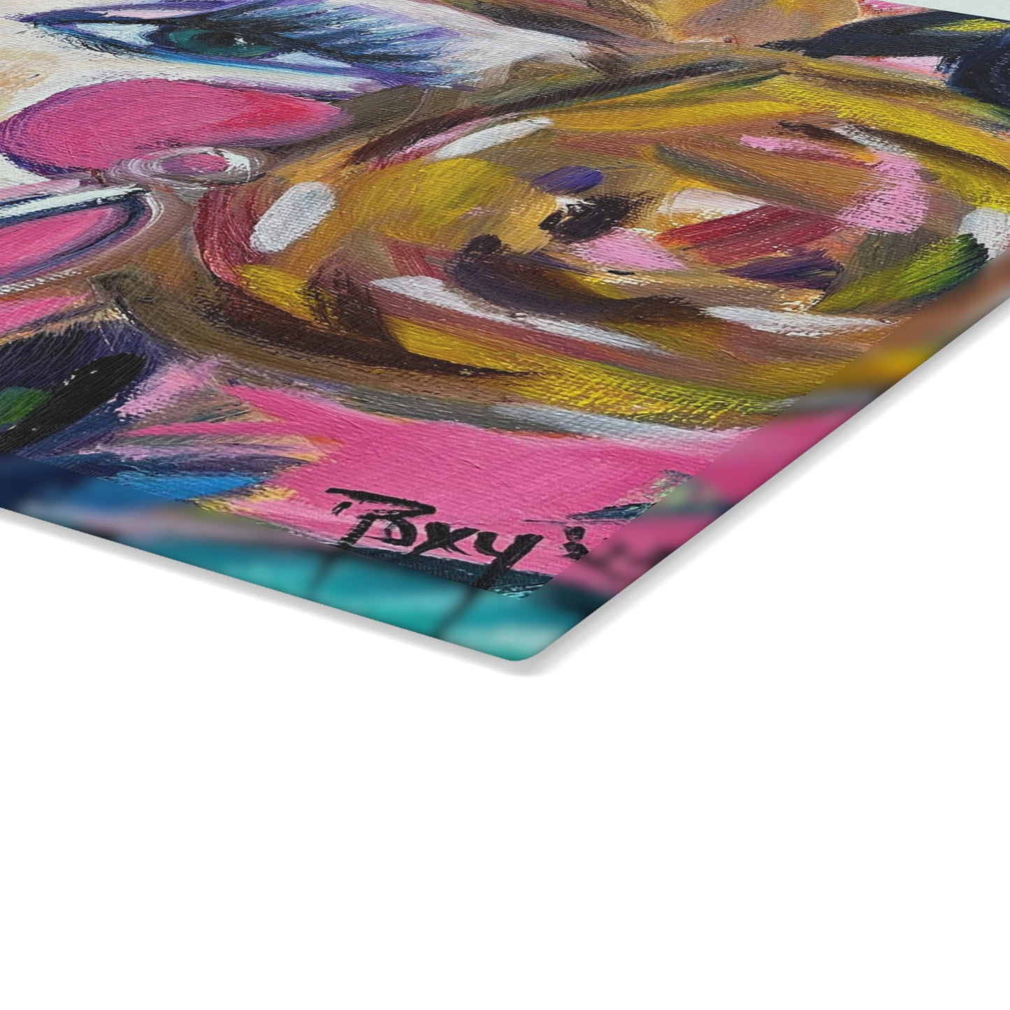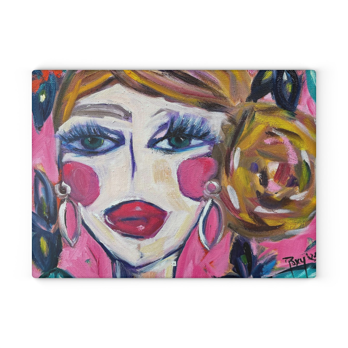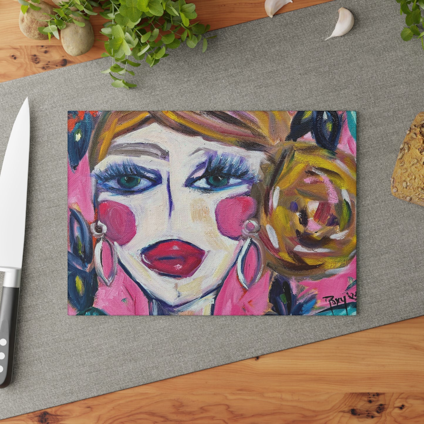 Lady with Irises: Pretty Pink Glass Cutting Board