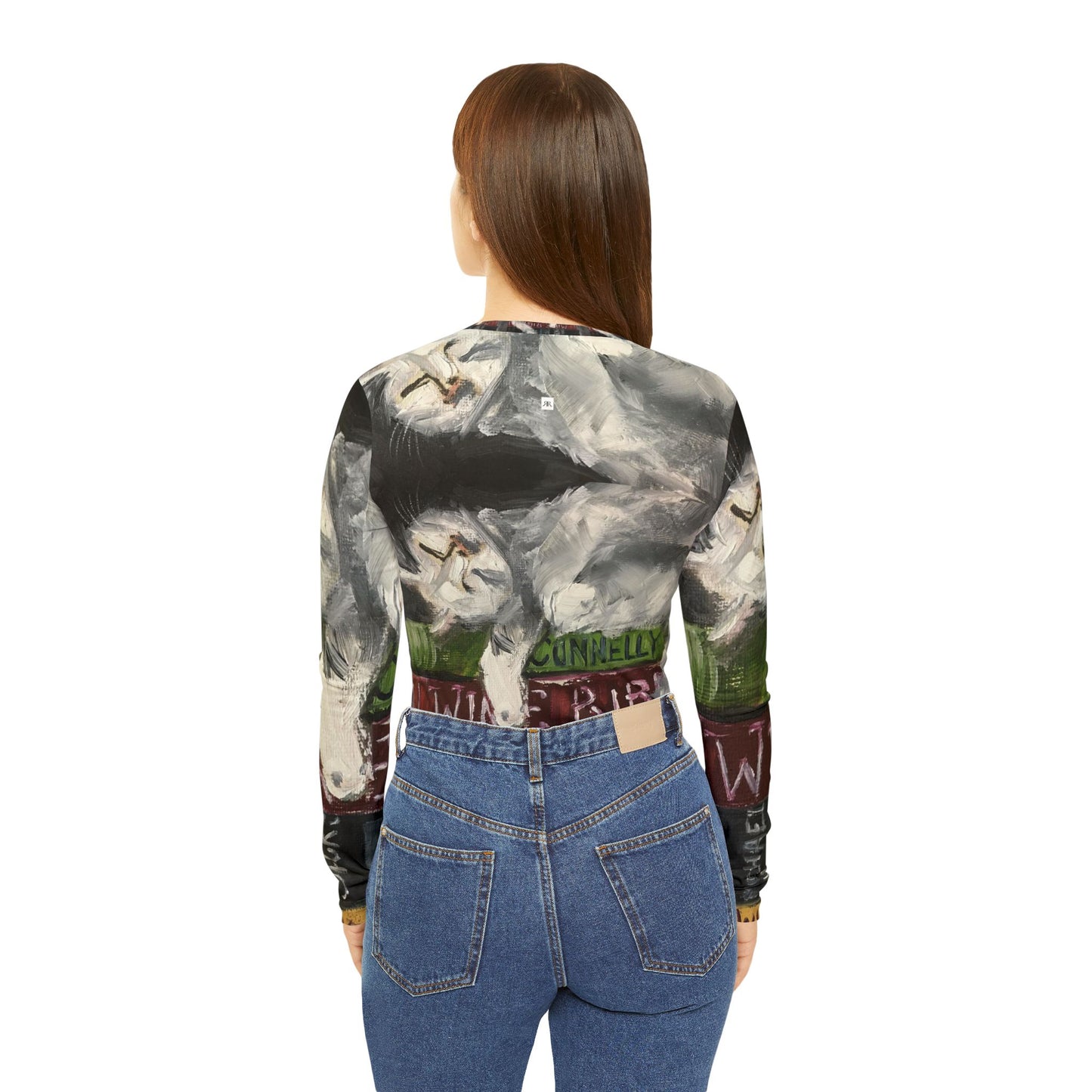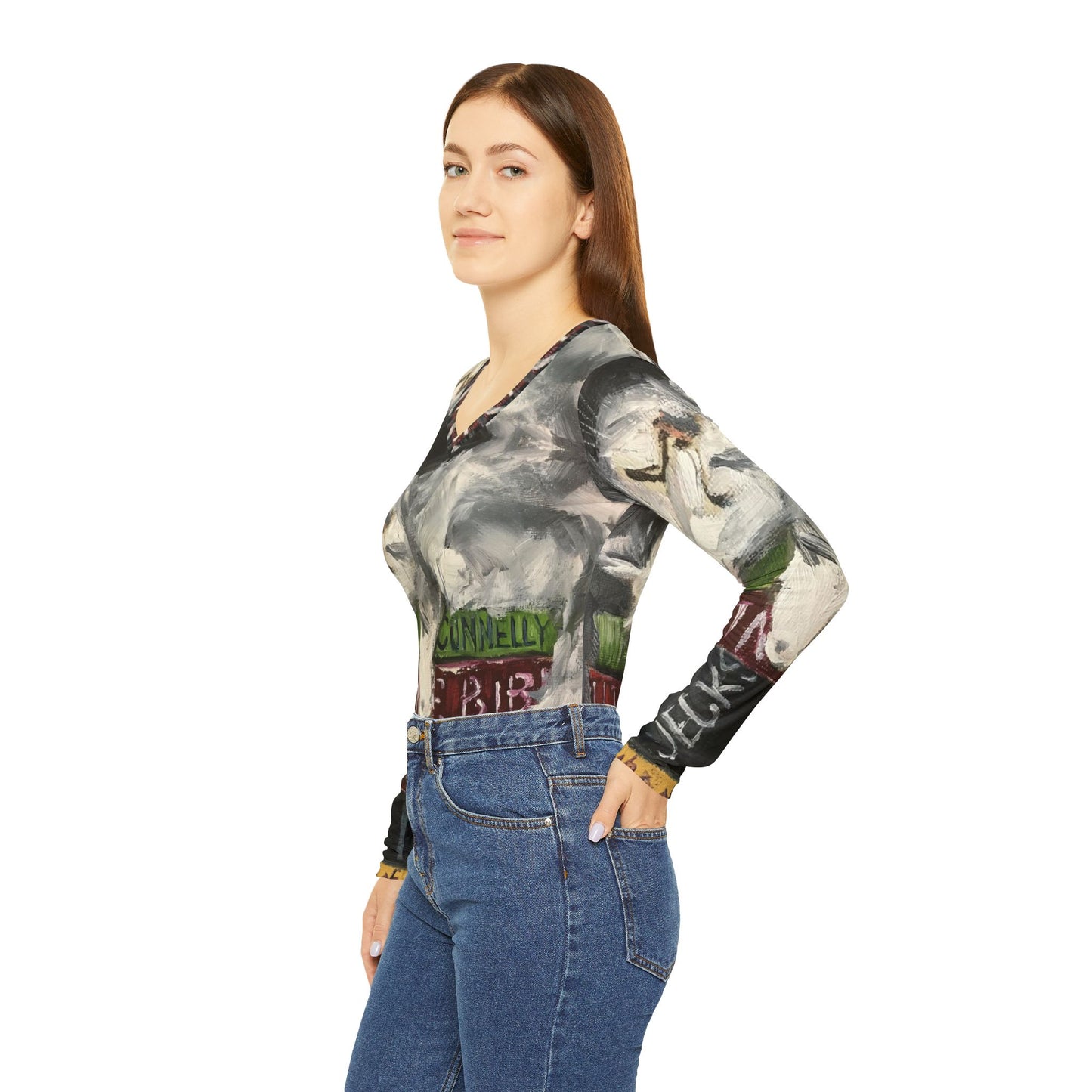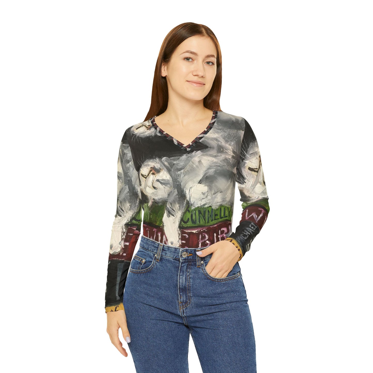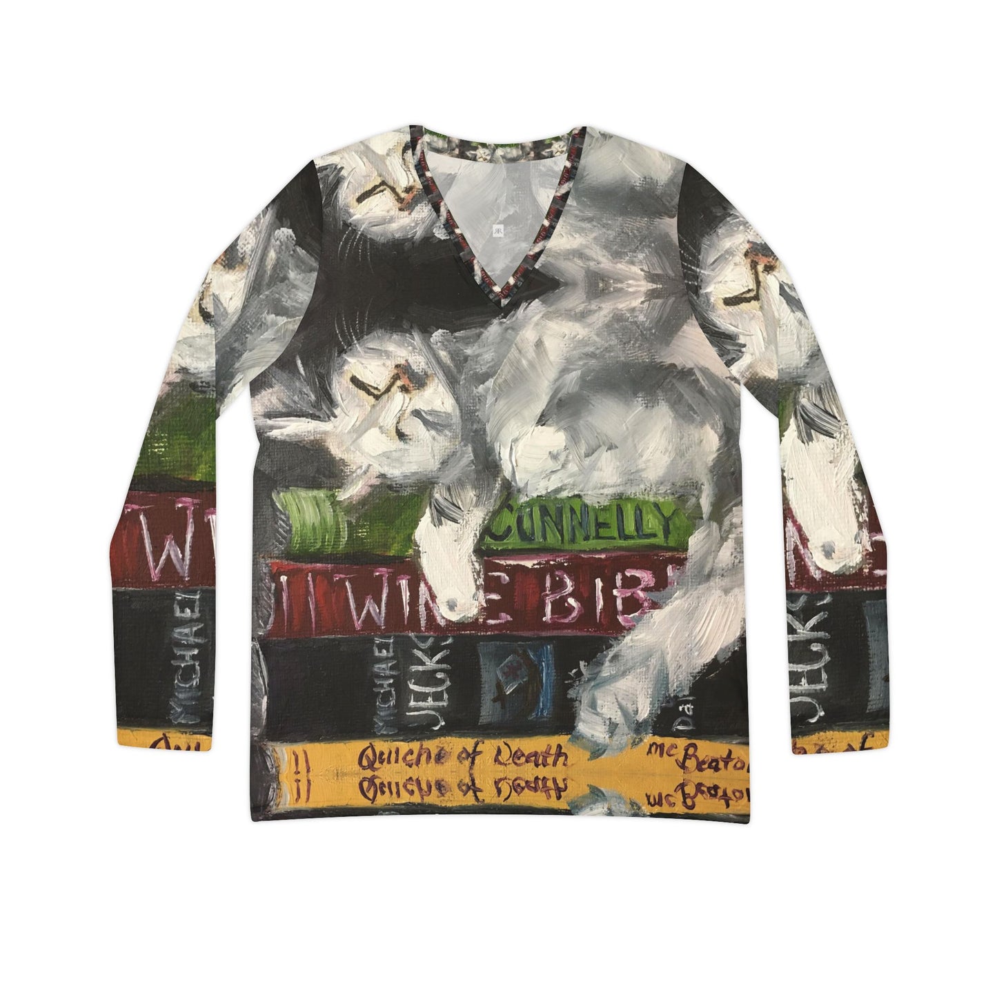 Long Sleeve Shirt- Bibliocat/ Cat Sleeping on Books- V-neck Women's
