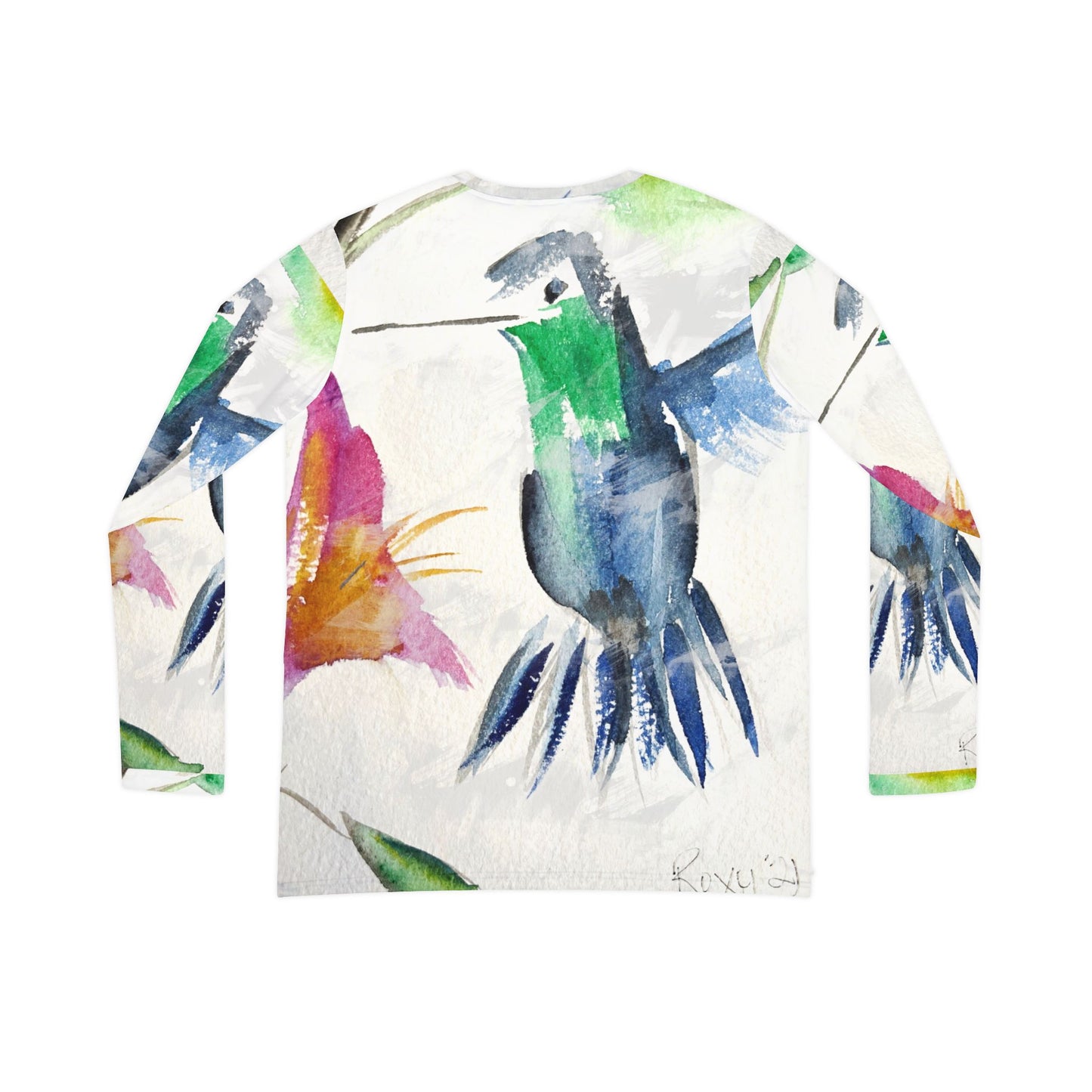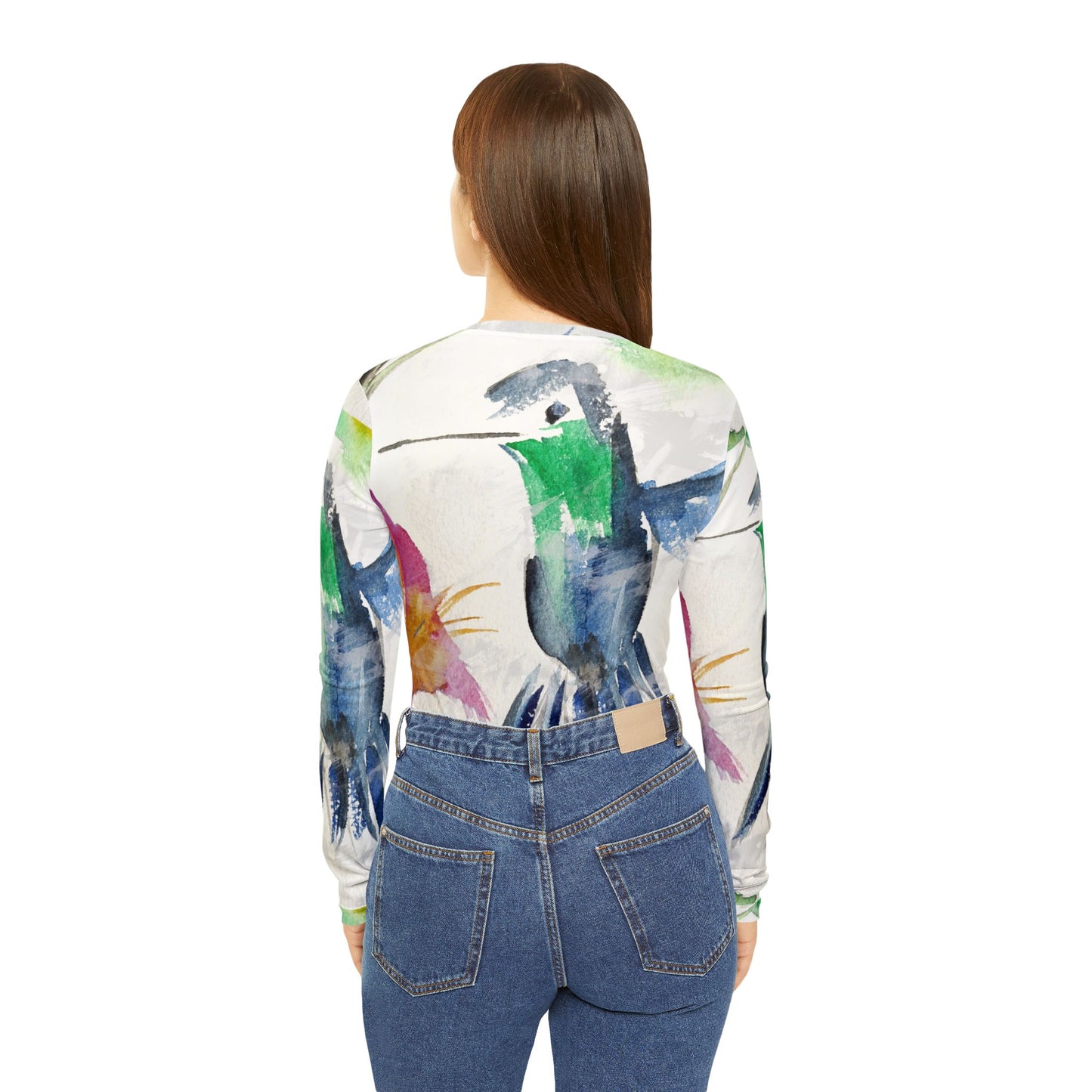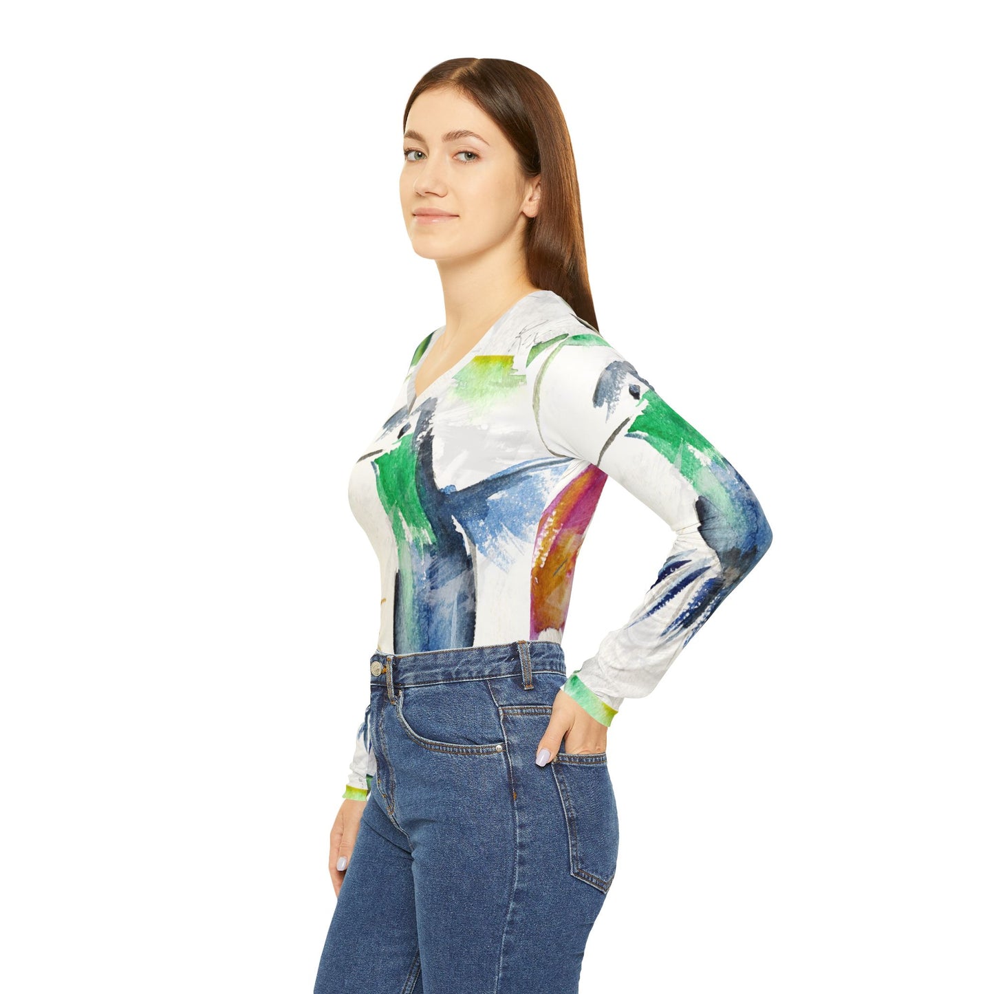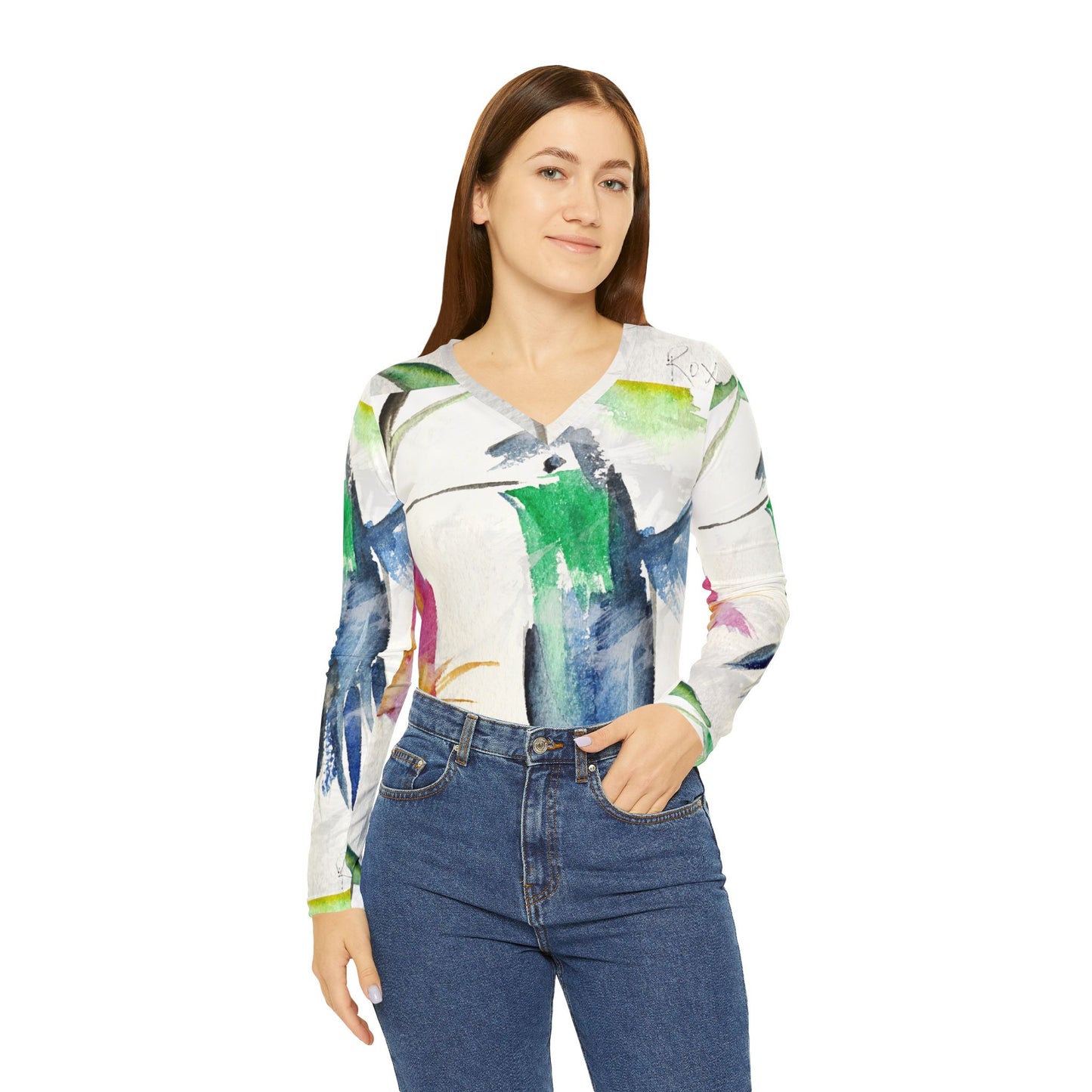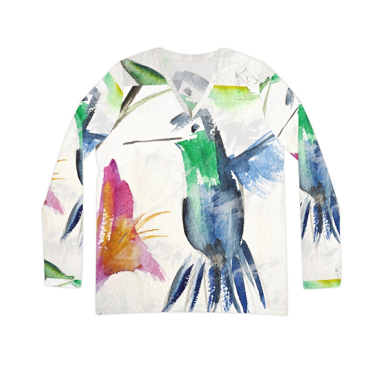 Long Sleeve Shirt-Floaty Blue Hummingbird- V-neck Women's