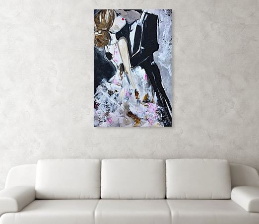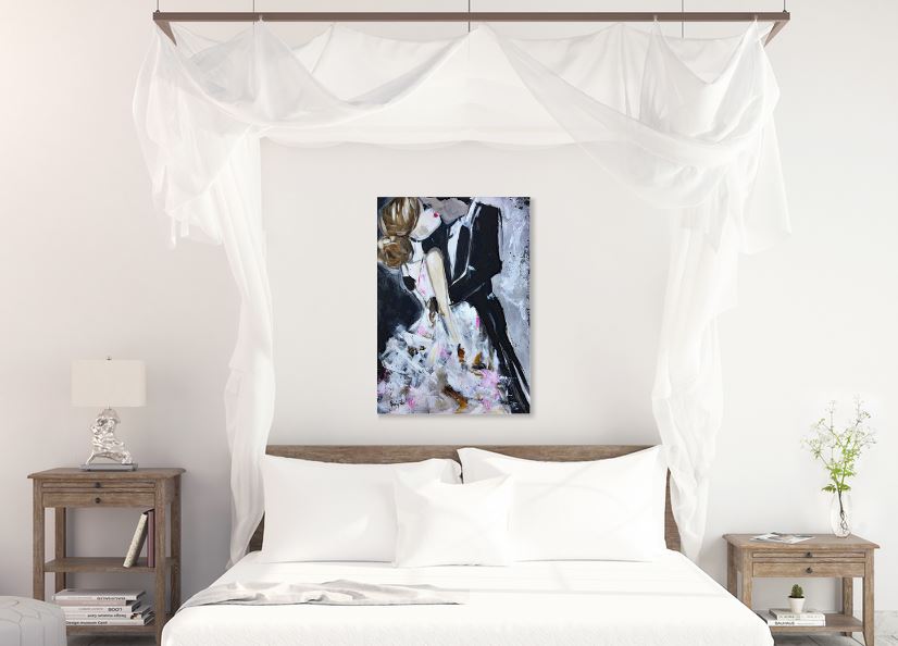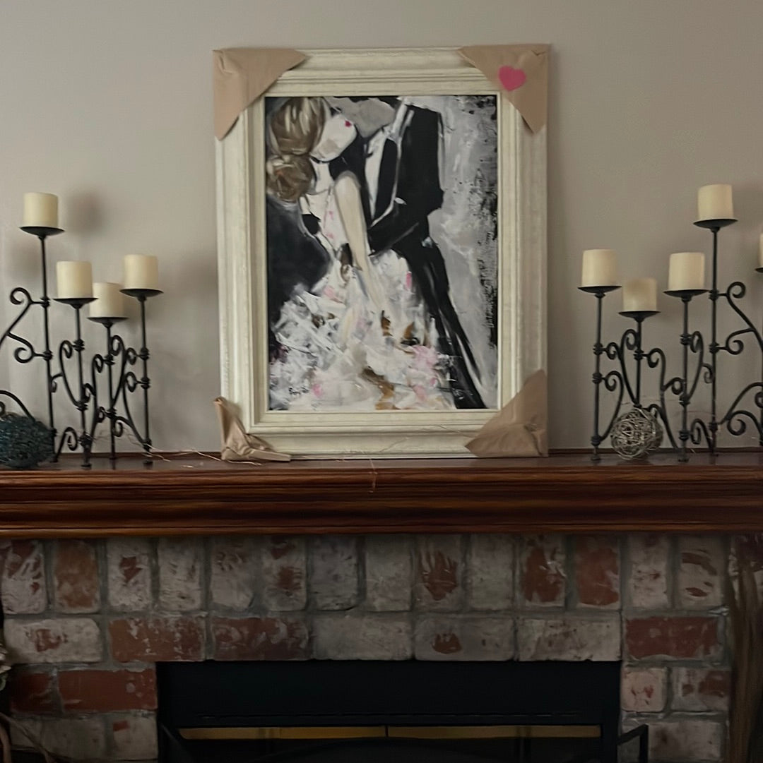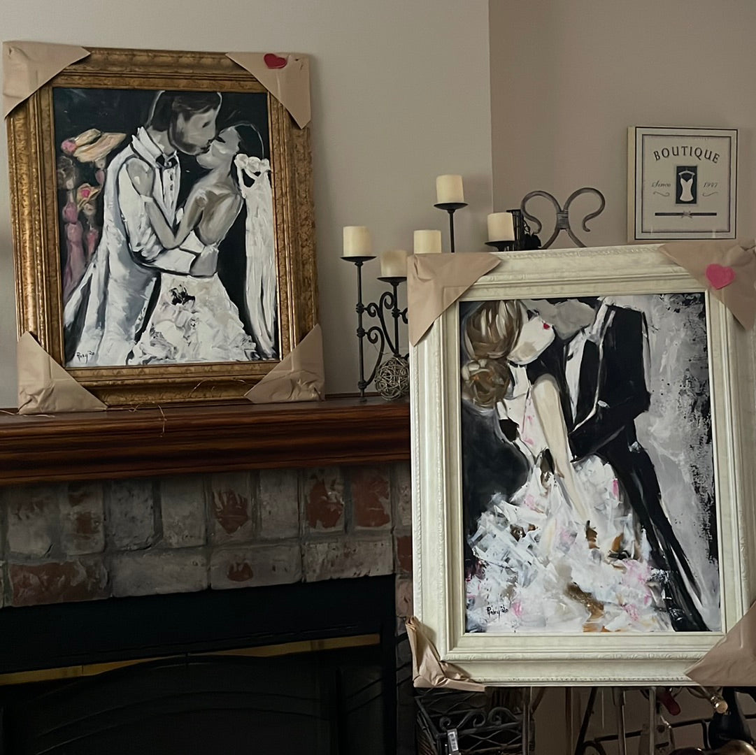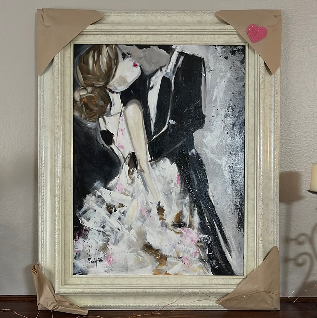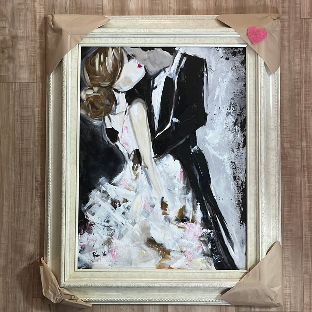 Love-Original Bride and Groom Kissing Painting Framed