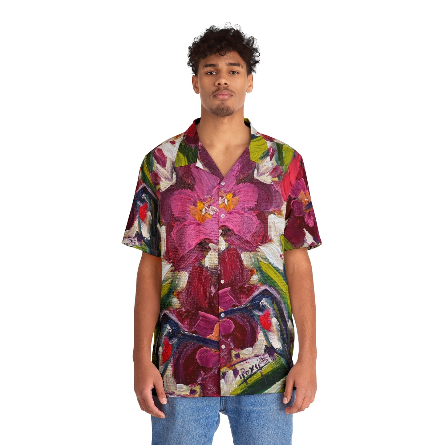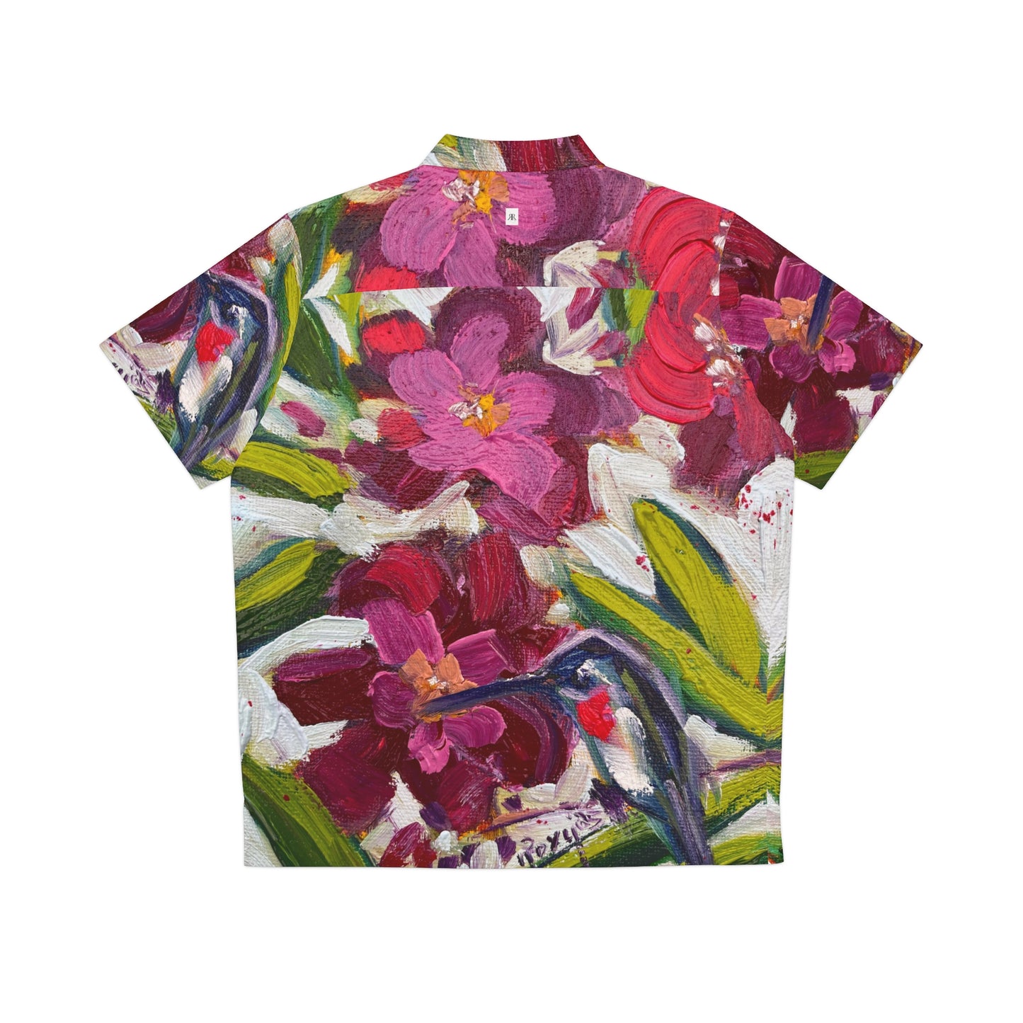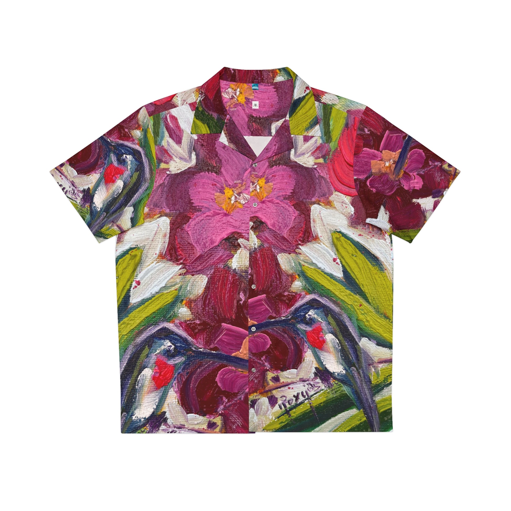 Men's Hawaiian Shirt- Fleeting Beauty-Hummingbird with Oleander blooms