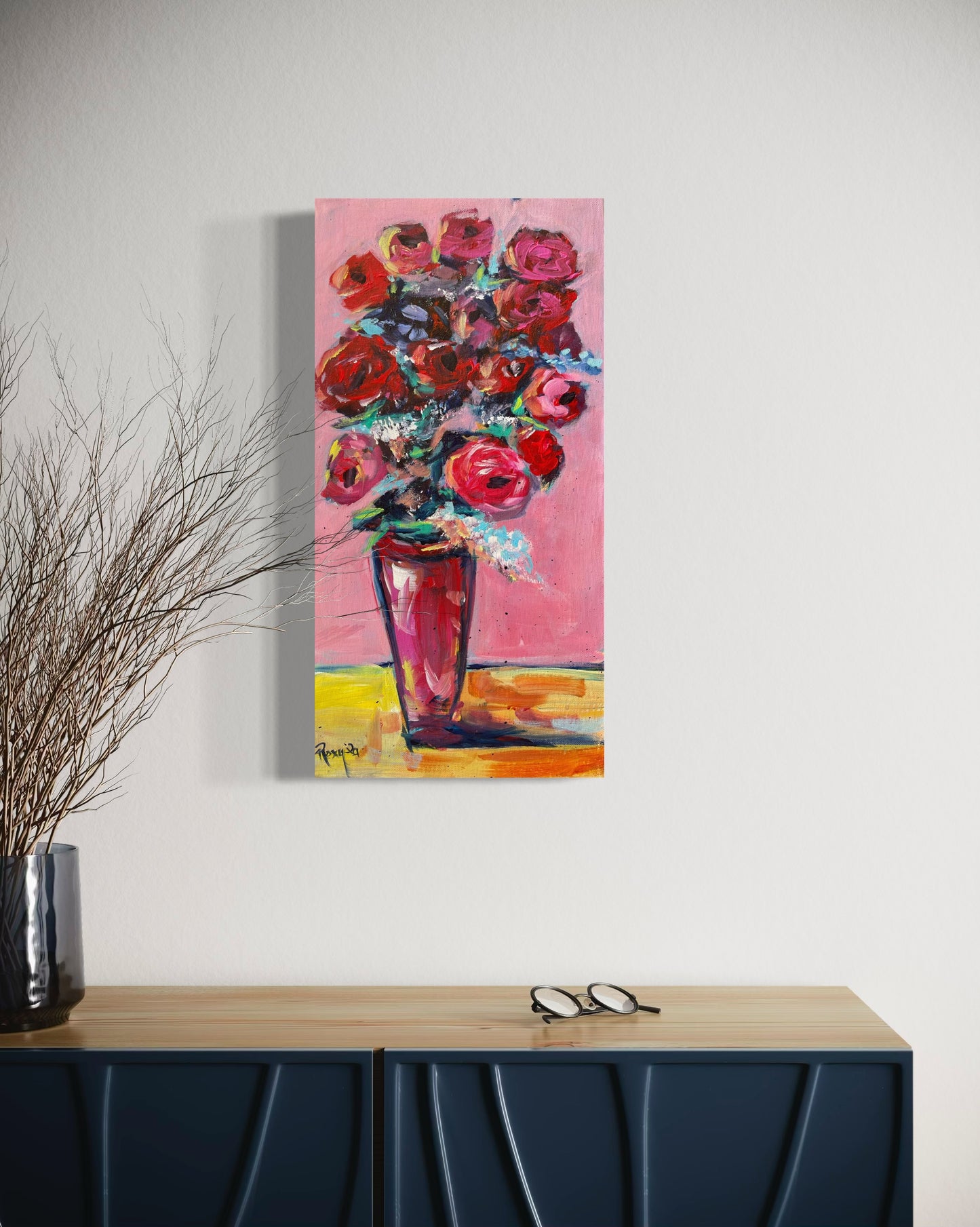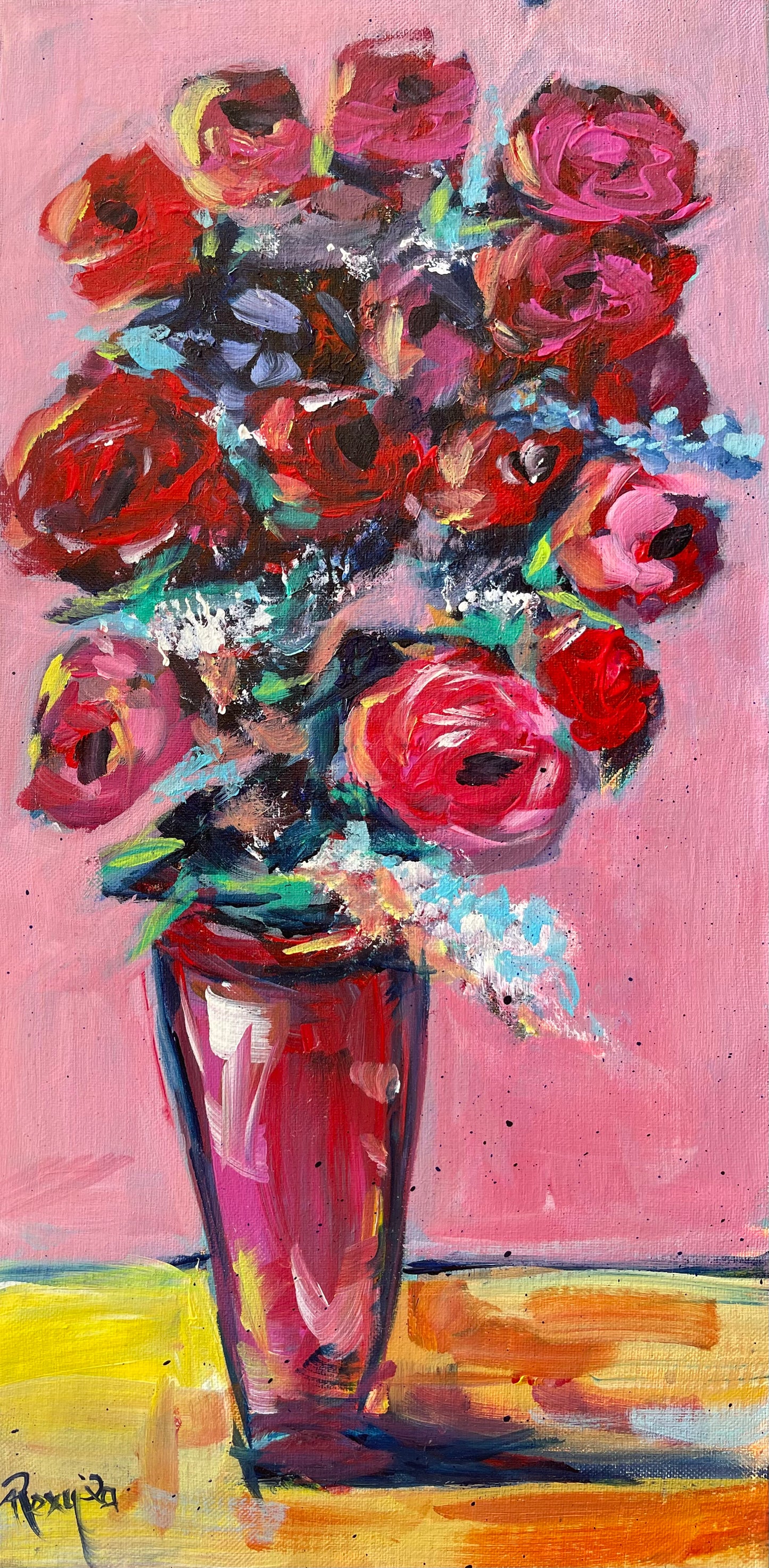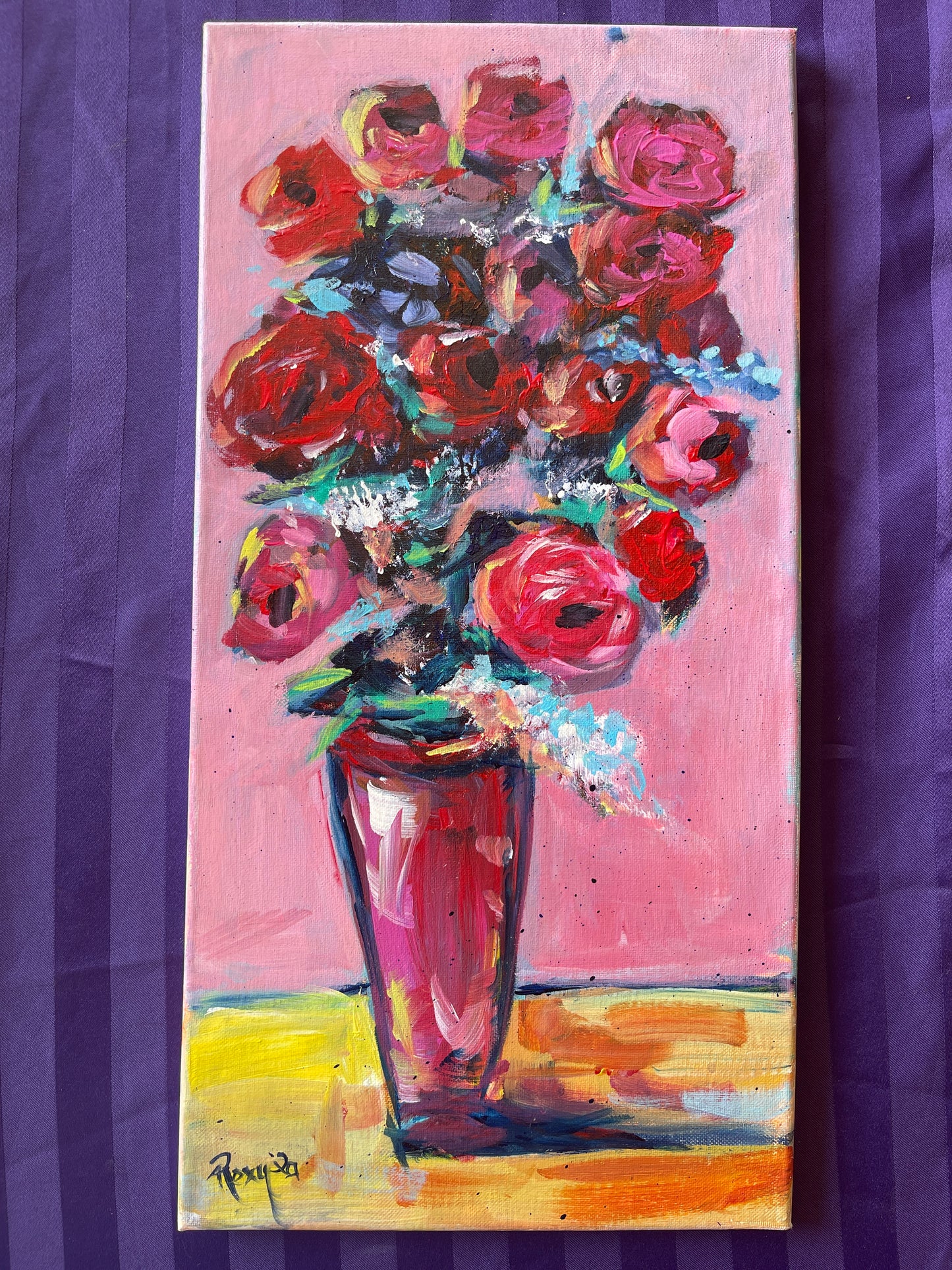 Original Acrylic Painting 10 x 20-Red Roses in a Vase