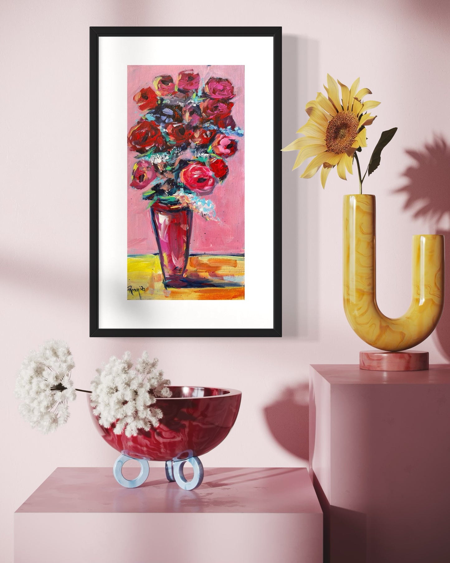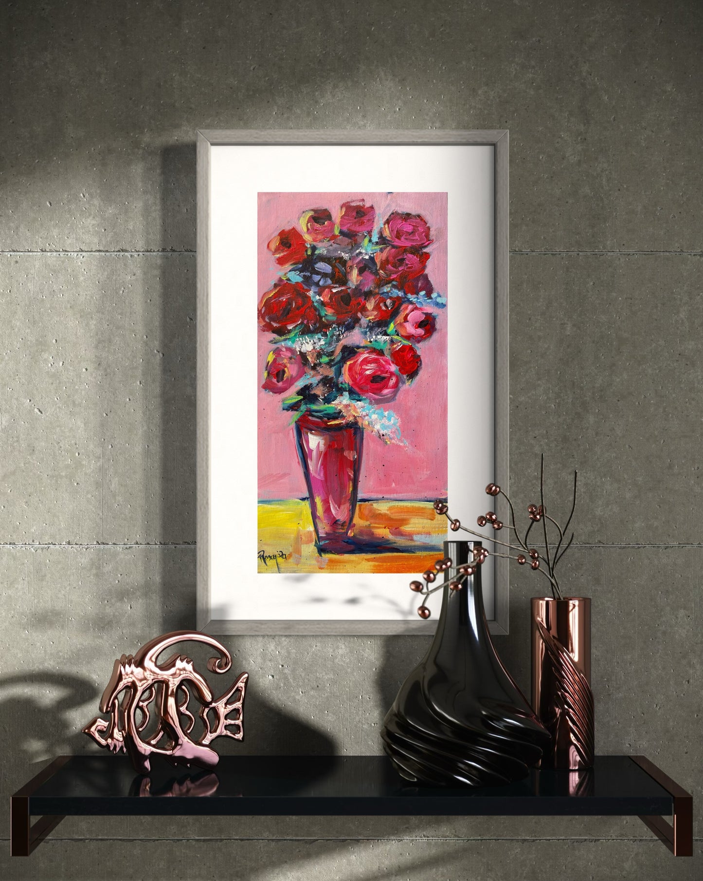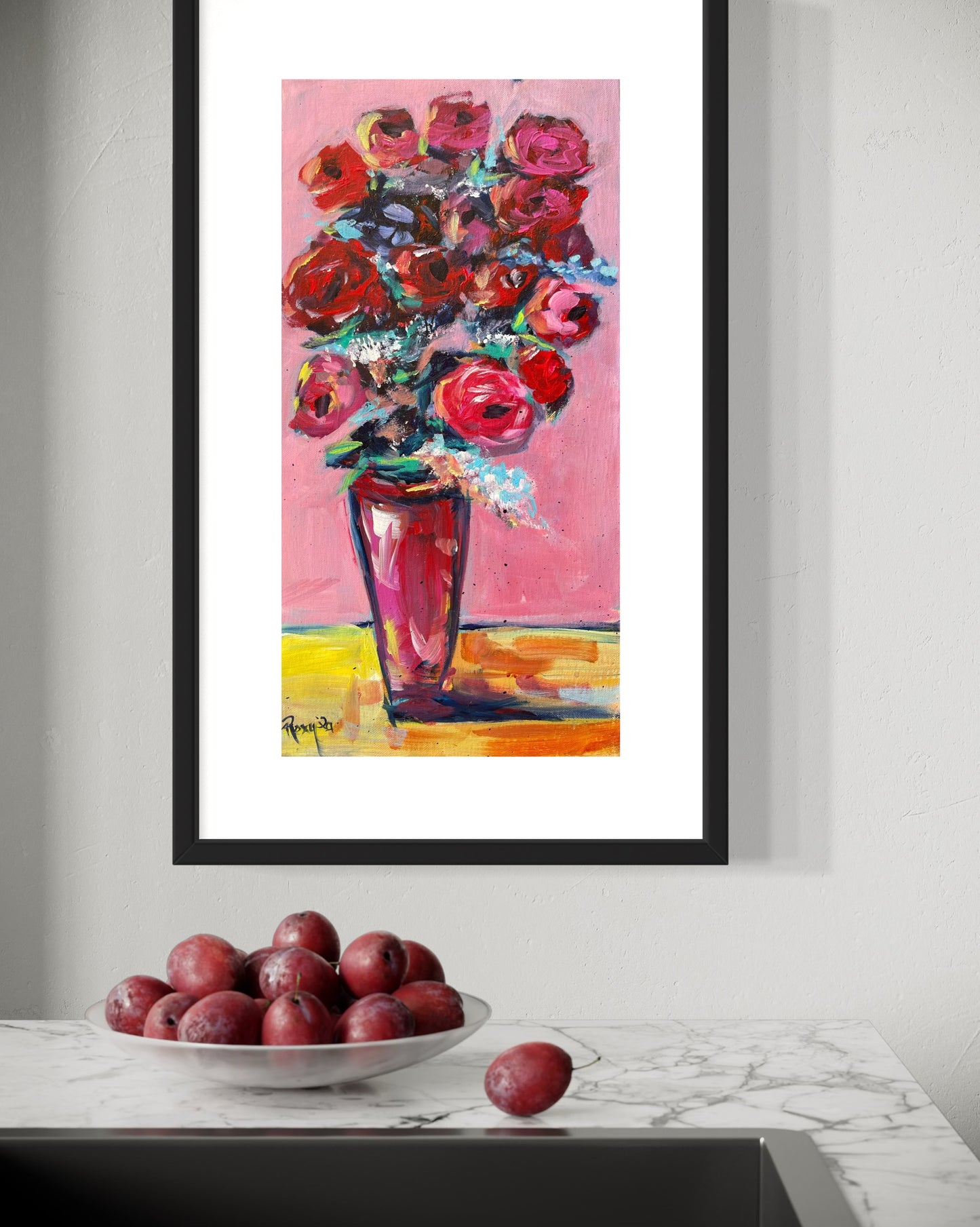 Original Acrylic Painting 10 x 20-Red Roses in a Vase
