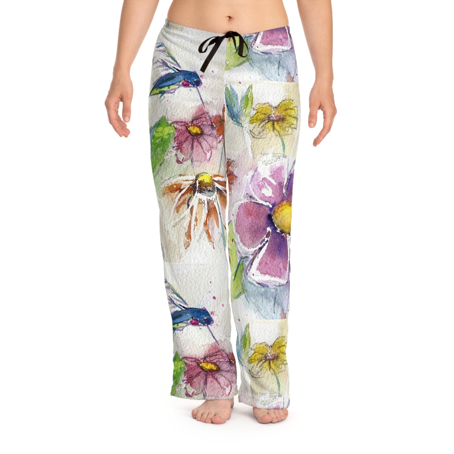 Pajama Pants - Hummingbird in the Garden- Women's Pajama Pants