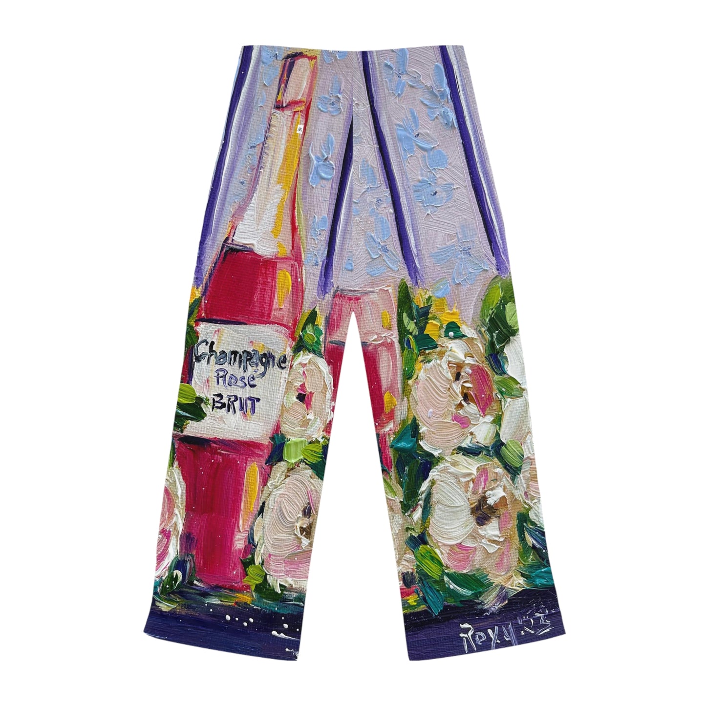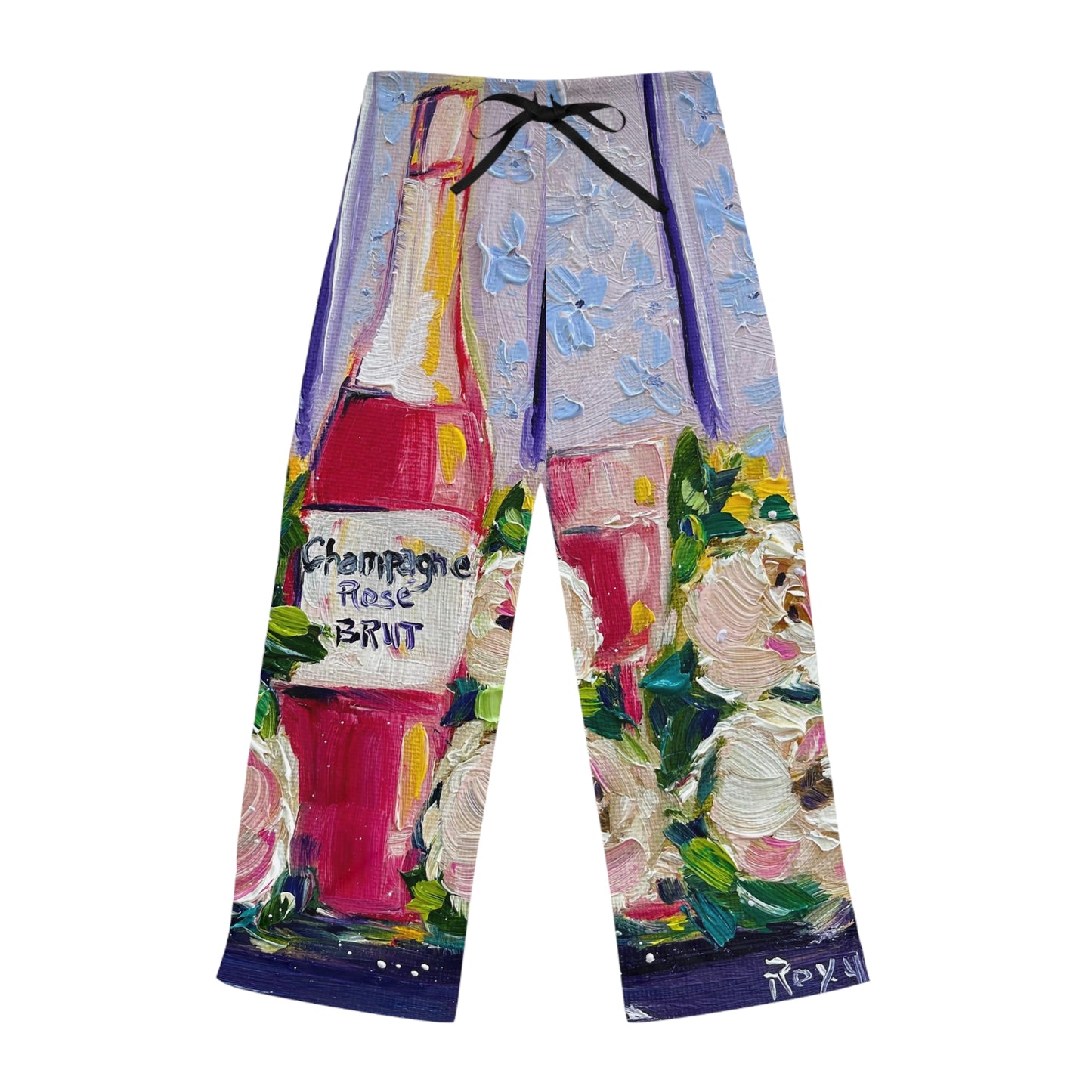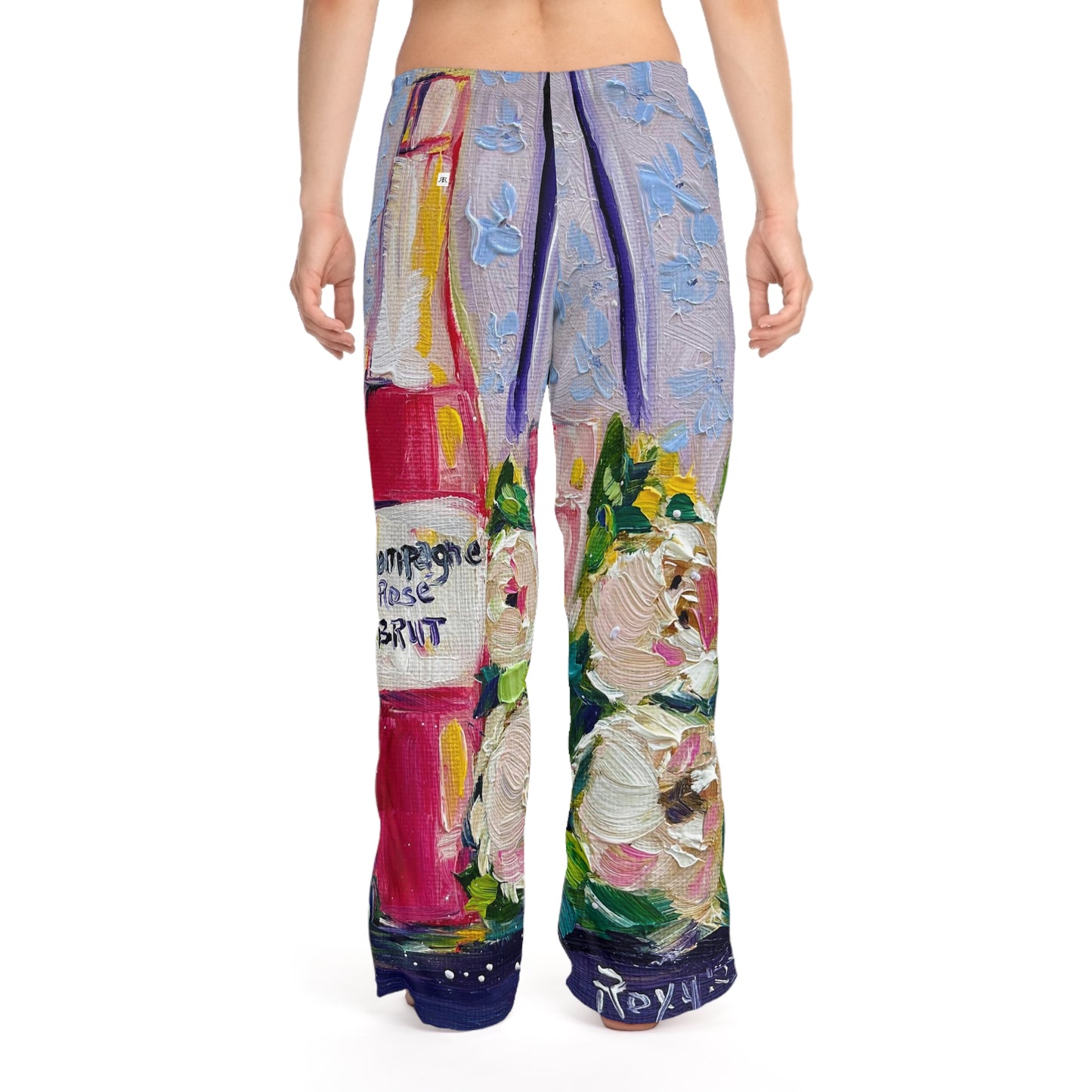Pajama Pants - Pink Champagne and Peonies- Women's Pajama Pants
