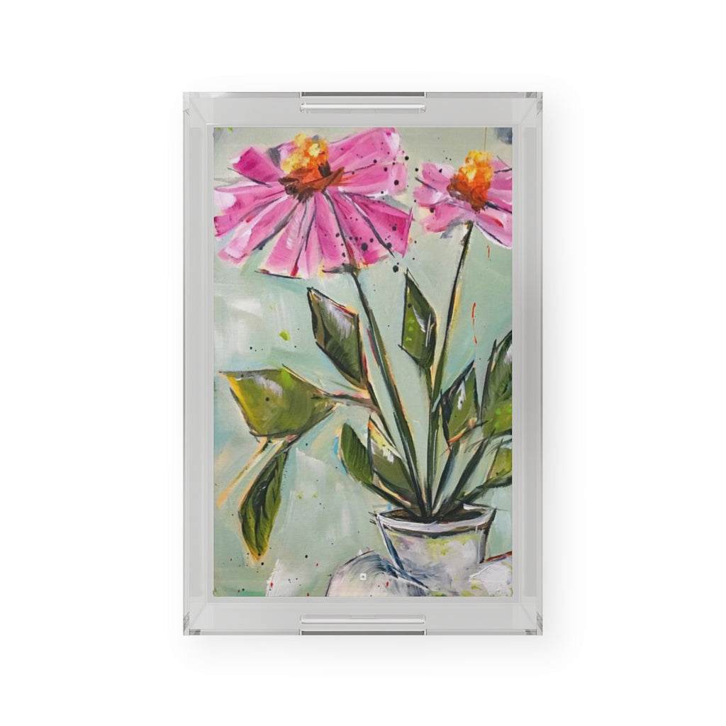 Pink Zinnia Acrylic Serving Tray