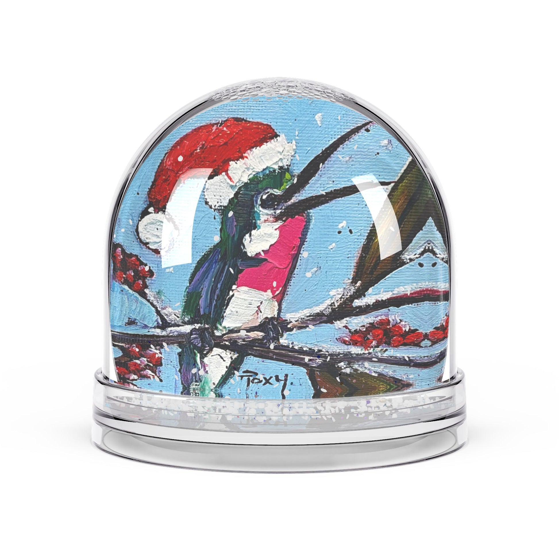 Snow Globe - Merry and Bright Hummingbird in Santa Hat