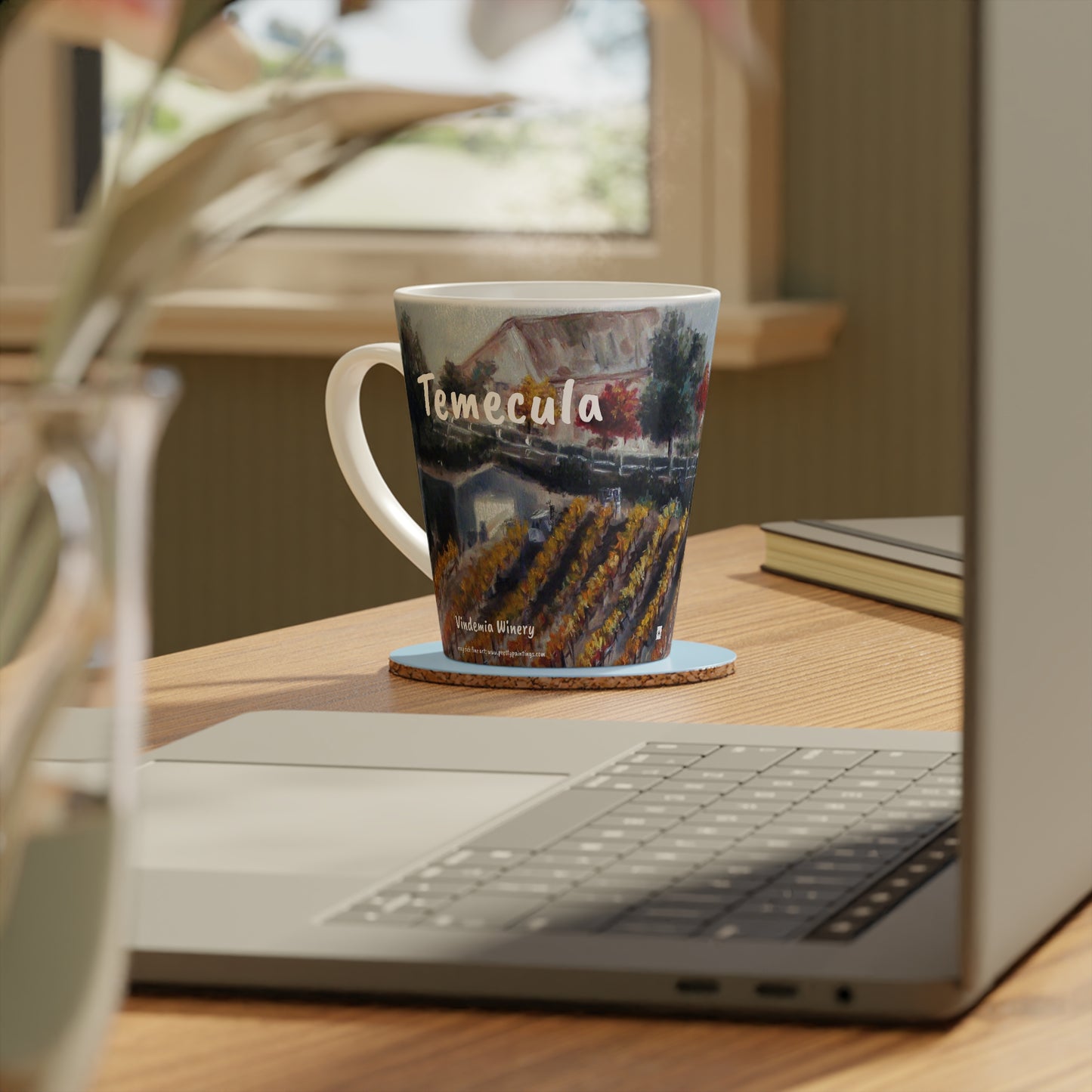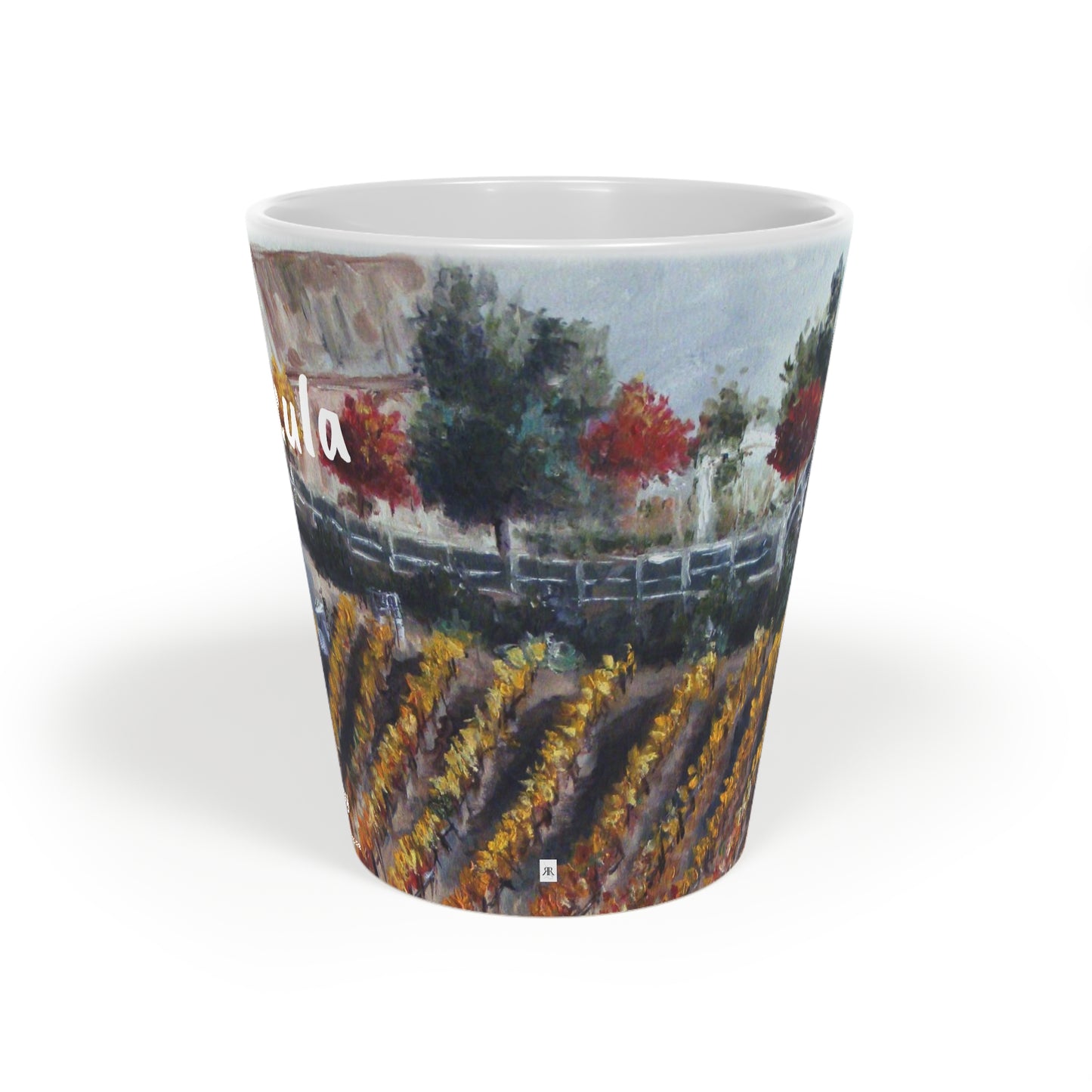 Temecula Latte Mug, 12oz featuring "Autumn Vines at Vindemia Winery" Painting