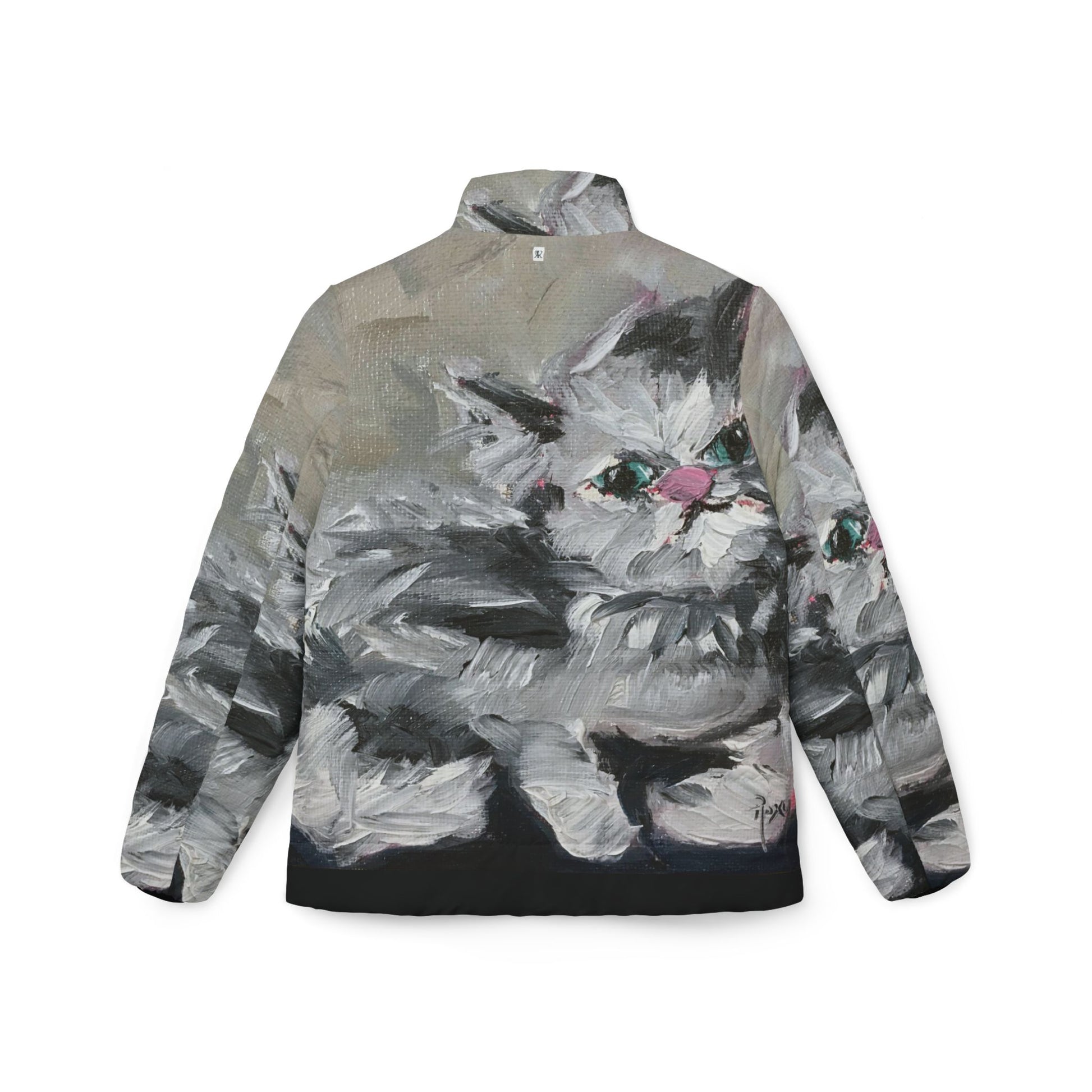 Women's Puffer Jacket - Roxy Rich Fine Art -Babe Fluffy Persian Cat