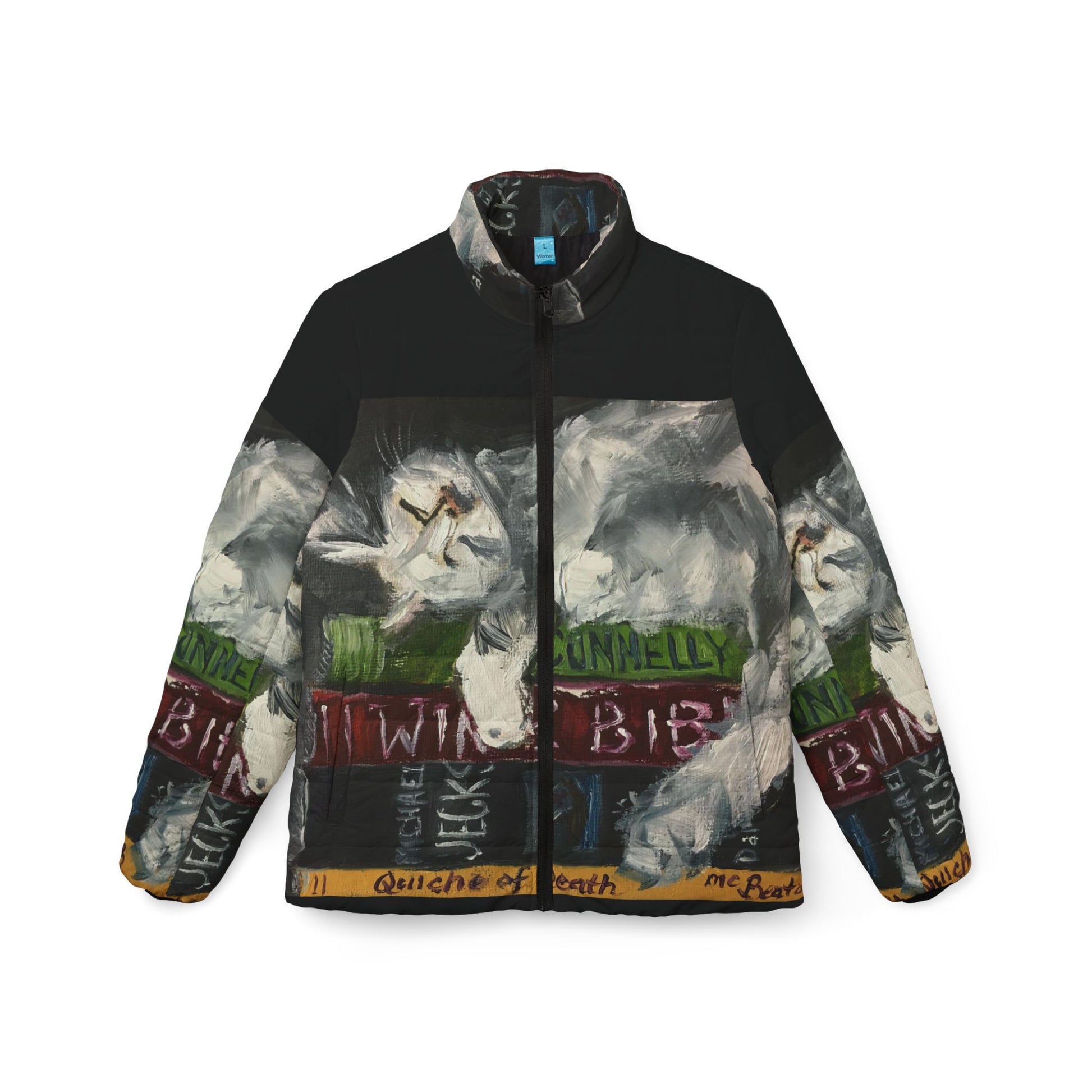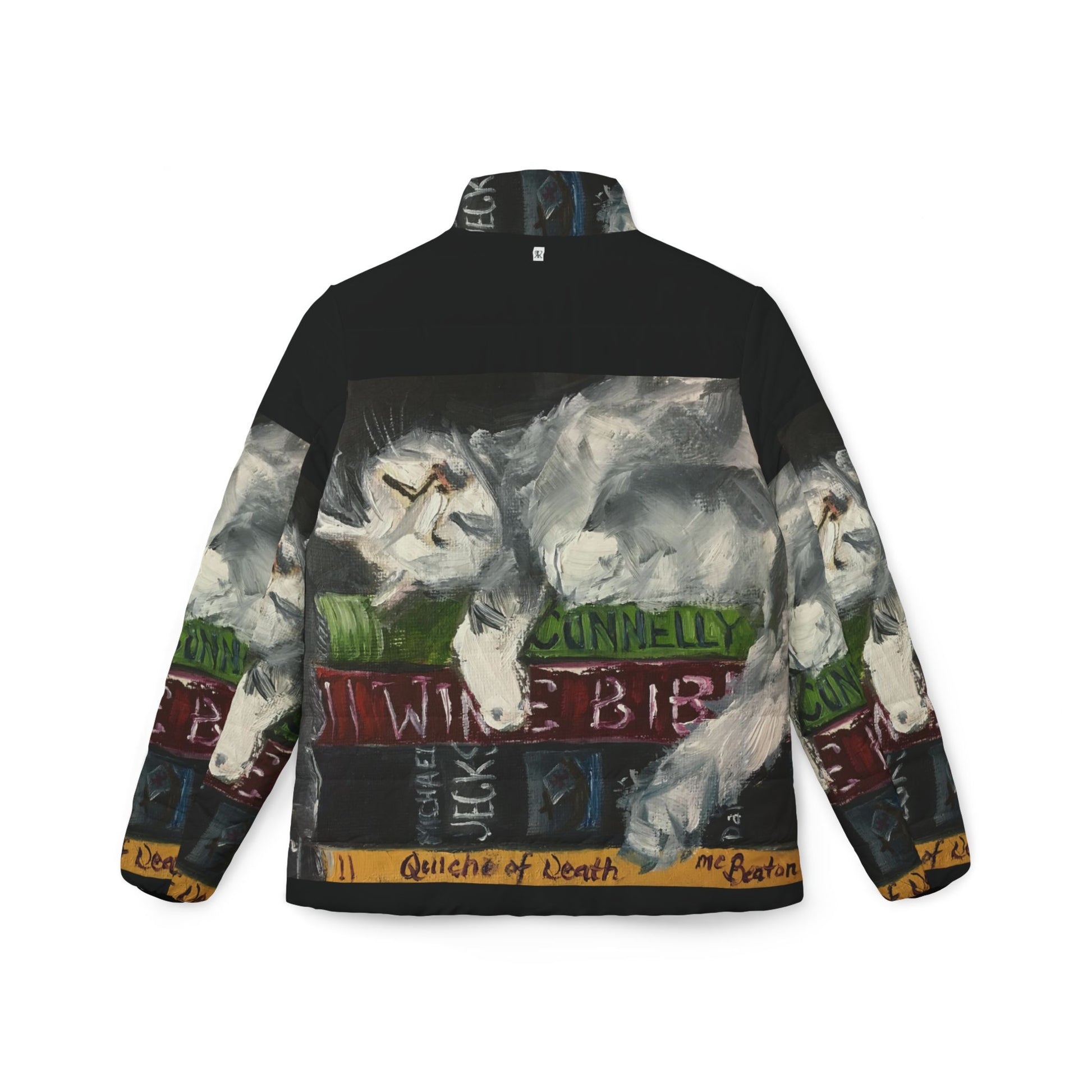 Women's Puffer Jacket - Roxy Rich Fine Art -Bibiliocat Cat Sleeping on Books