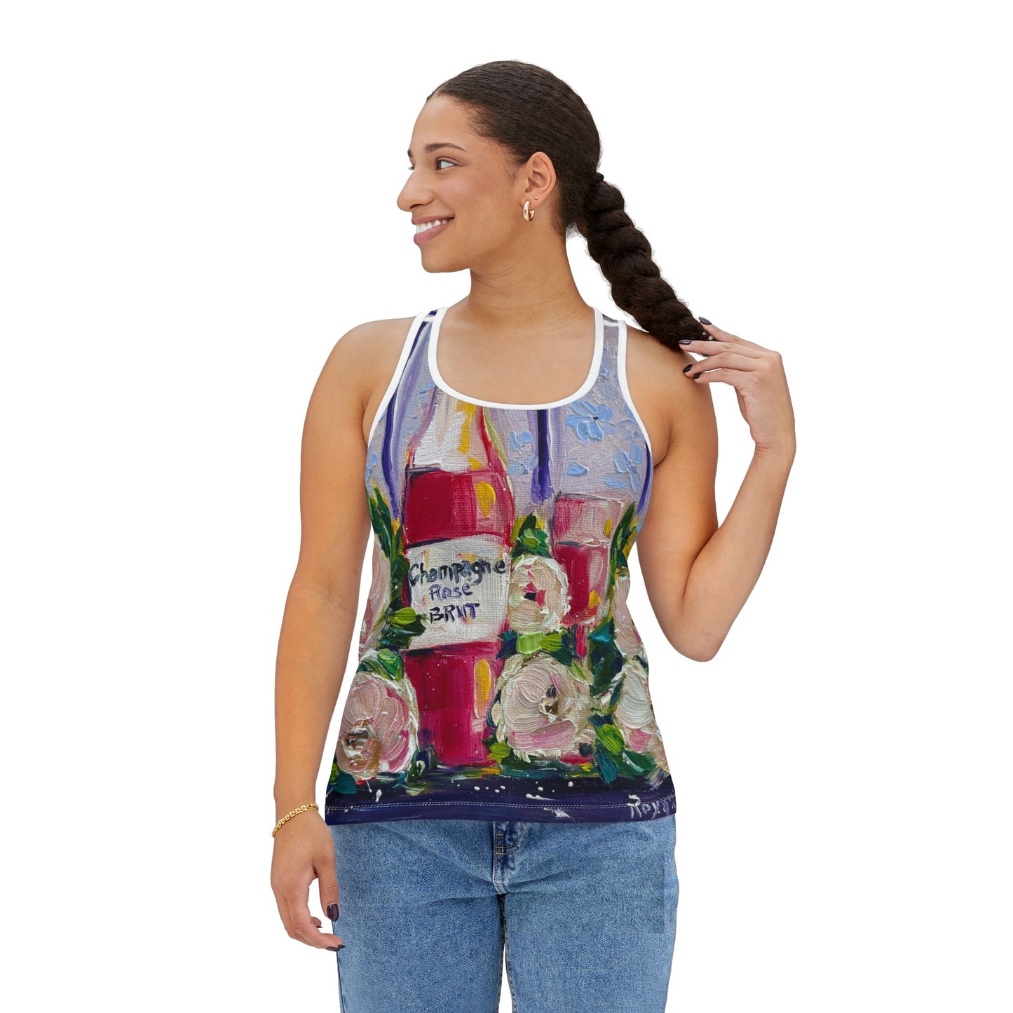 Women's Racerback Tank Top-Pink Champagne and Peonies