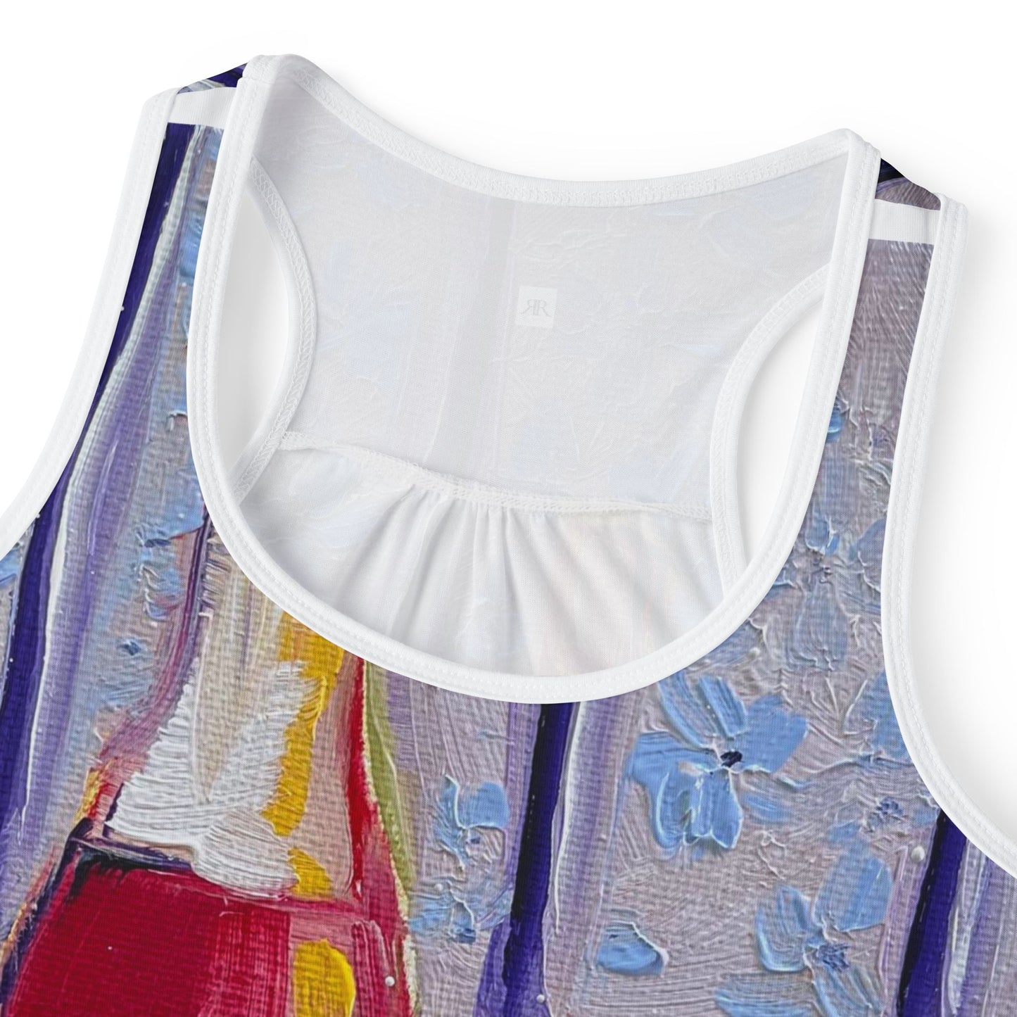 Featuring Roxy's painting, this Rcerback Tank Top with bold, bright colors and visible brushstrokes is perfect for gardening and other outdoor summer activities, giving off a vibrant and artistic vibe. Ideal for women who enjoy spending time outdoors and appreciate unique artwork. Relevant for summer, gardening enthusiasts, wine tasting, and nature lovers. *Pair it with her matching pajama/lounge pants for a flowy matching set!