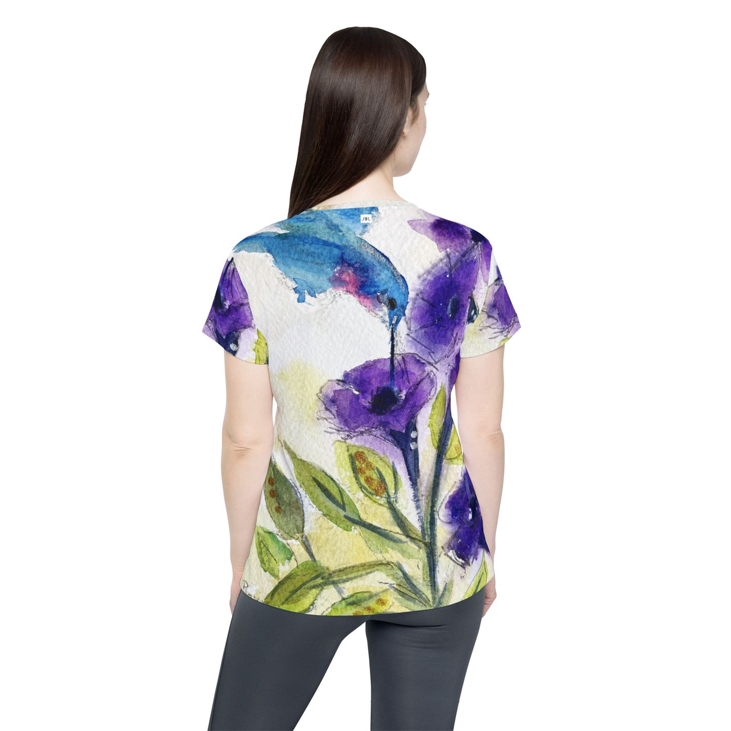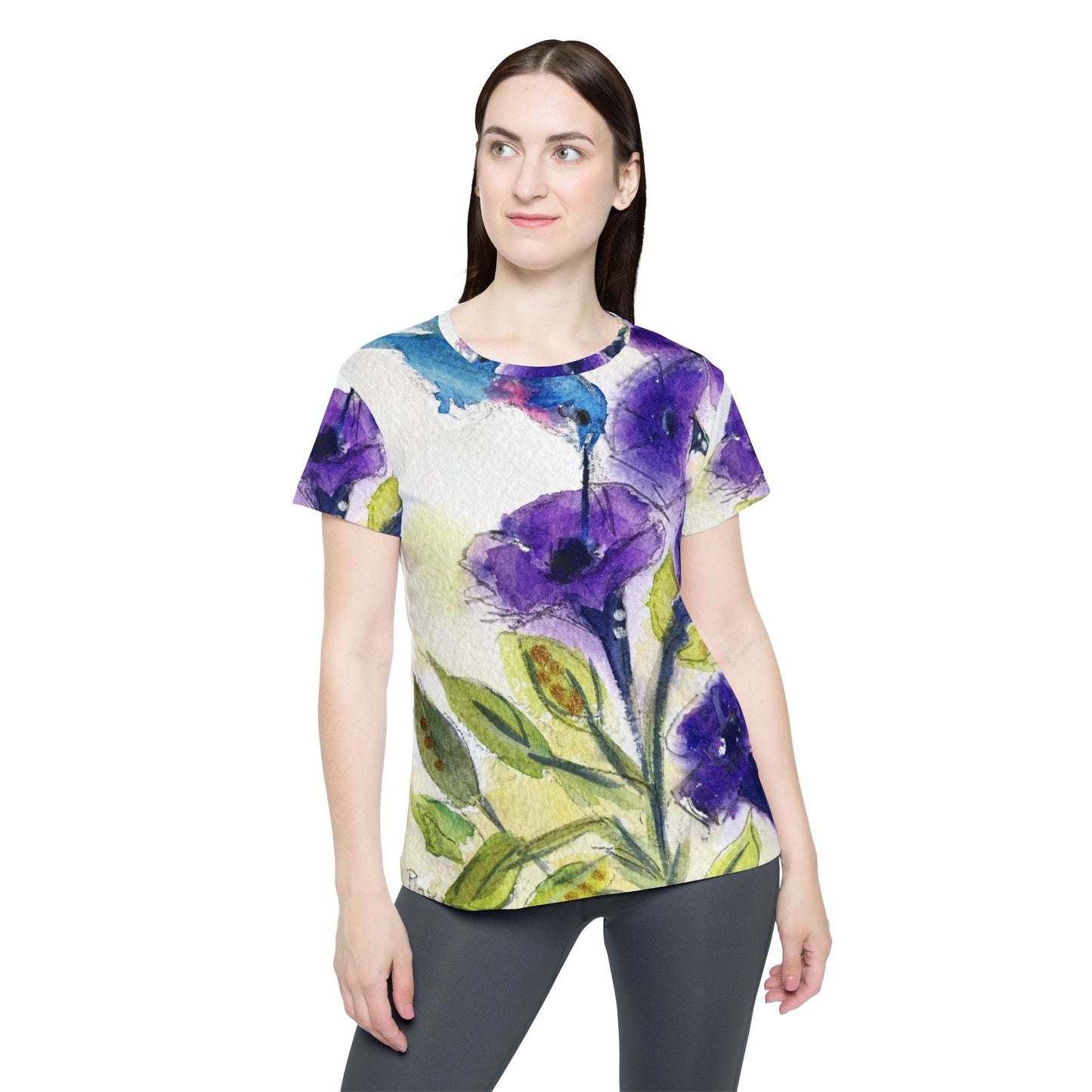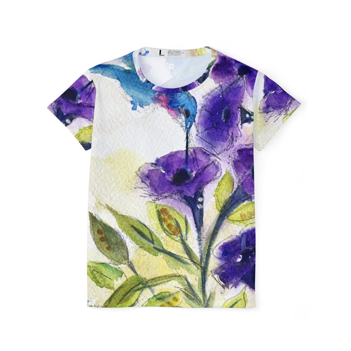 Women's Sports Jersey -Hummingbird in Purple Tube Flowers