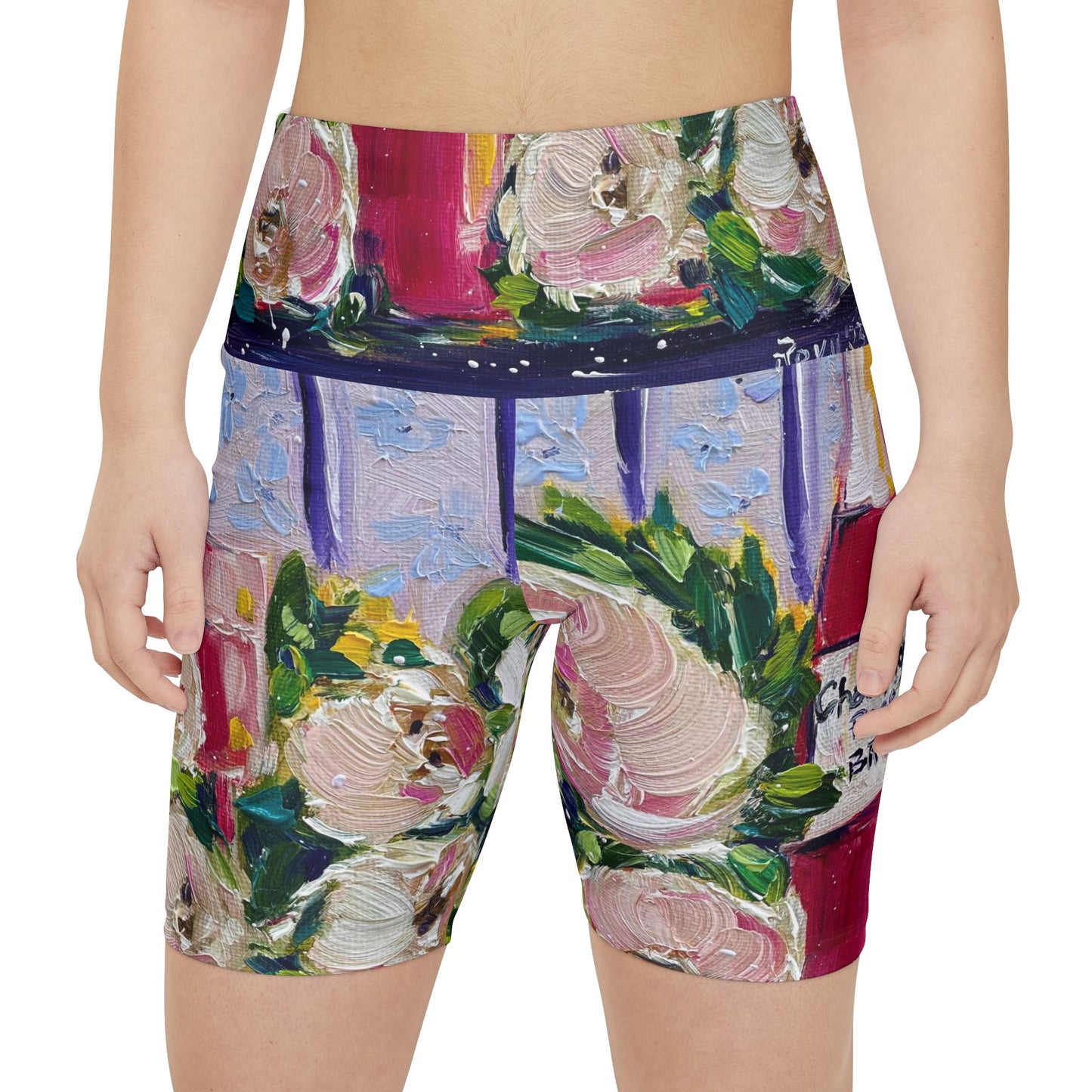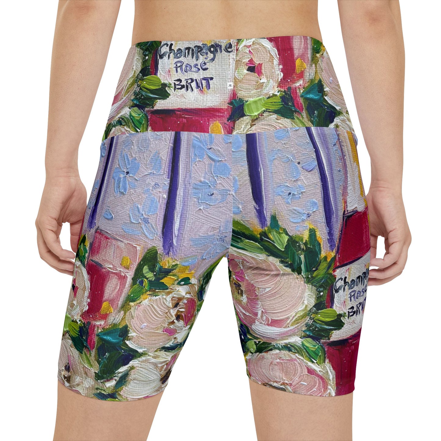 Women's Workout Shorts - Pink Champagne and Peonies